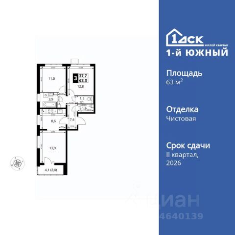ДОПОЛНИТЕЛЬНАЯ СКИДКА ДО 10% В ОФИСЕ ПРОДАЖ! Прямая продажа от застройщика! Жилой Комплекс класса Комфорт Плюс. Продаётся 3-к квартира номер 888 общей площадью 63.3 кв.м. на 14-м этаже 24 этажного здания. Чистовая отделка. Цена с учётом скидки. Особенности квартиры: - МЦД-5 в пешей доступности - Квартал с южным садом - Свои 3 детских сада и 2 большие школы - Распашная планировка - отличное сочетание удобства и свободы. - Увеличенное количество окон - дополнительное освещение и свежий воздух. - Раздельный санузел - больше удобства для всех членов семьи. - Евроформат - просторное и удобное жилье с отличной планировкой. - Кухня-гостиная - идеальное пространство для встреч с близкими. - Линейная кухня - функциональность и практичность в одном решении. - Гардеробная - удобство для хранения и организации вещей. - Ниша под шкаф - компактное и удобное место для вещей. - Лоджия - уютное место для отдыха и тишины. Информация о комплексе: Одно из преимуществ проектов 1- ДСК большие застекленные лоджии. Другое преимущество честный евро-формат. Во всем проекте предусмотрена система Умный дом. В состав устанавливаемого пакета устройств входит: WiFi реле для управления группами потребителей, беспроводной кран перекрытия с эл. приводом, беспроводной сенсор протечки, Яндекс Станция Мини. Его расположение можно назвать удачным за счет транспортной доступности и близости к природным объектам. По соседству лес, а в каждом дворе плодовые деревья. Весной квартал окутывает бело-розовое облако: это цветут яблони, груши, сливы. К августу в воздух наполняется ароматом созревших плодов. Зимой среди покрытых инеем деревьев протянулась лыжня. Транспортная доступность: - Общественный транспорт: Действующая ж/д станция Булатниково (в перспективе будущая МДЦ D5) в пешей доступности, всего 10-12 минут. - Личный автотранспорт: Удобный выезд на трассу М4-Дон в сторону Москвы и области 850 м, до МКАД - 1 км Внутренняя инфраструктура: Красивые продуманные подъезды - еще одно преимущество проекта 1-й Южный. Вход в сквозные подъезды есть и с улицы, и со двора. Благодаря сплошному остеклению в них всегда светло и уютно. Подъезды расположены на уровне земли, поэтому и молодым родителям с коляской, и жильцам с ограниченными возможностями вход и выход неудобств не доставят. В помещении предусмотрено место под стойку ресепшен с выводом инженерных сетей. Если жильцы решат на общем собрании, что необходим охранник или консьерж, организовать для них рабочее место можно быстро и с минимальными затратами. В подъездах предусмотрены уборные для детей и взрослых. Колясочные в каждом подъезде позволяют поддерживать порядок и чистоту на этажах. На случай прогулки с четвероногим питомцем в непогоду в подъездах устроены лапомойки. Во дворах и на общественных территориях 1-ого Южного столько всего интересного для юных обитателей. Собственные 3 детских сада и 2 больших школы буквально под окнами Изюминка проекта - пешеходный бульвар-дендрарий, он идеален для