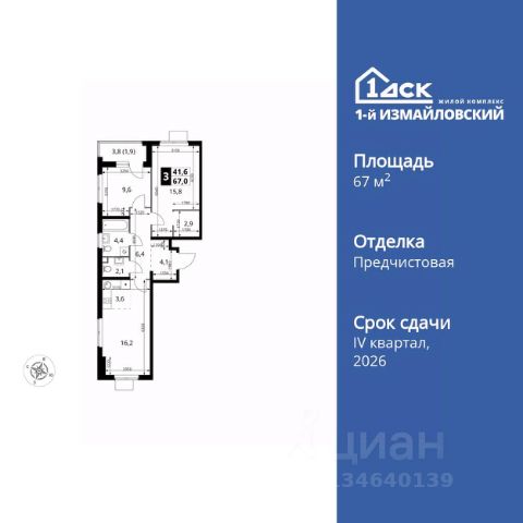 Продаётся 3-комн. квартира площадью 73,5 кв.м на 6 этаже 16 этажного дома (Корпус 1.4, Секция 4) проекта ПИК 2-й Иртышский. Светлый просторный подъезд на уровне земли, функциональная планировка, большие окна, c отделкой. "2-й Иртышский" возводится на востоке Москвы, между тремя станциями метро "Щелковская", "Черкизовская" и "Бульвар Рокоссовского". Проект включает жилые корпуса с индивидуальной архитектурой, школу и детский сад. Проект состоит из зданий разной высоты и разной по характеру архитектуры. Узнаваемой доминантой квартала станет башня из стекла и металла, напоминающая водопад. Квартал расположен в окружении нескольких знаковых рекреационных зон столицы. Вам понадобится всего несколько минут, чтобы оказаться в атмосфере спокойствия и слияния с природой. Всего 15 минут пешком, и вы в "Сиреневом саду", а дорога до национального парка "Лосиный остров" или Гольяновского пруда займёт 6 минут на авто. До Черкизовского детского парка и "Усадьбы Измайлово" можно доехать за 15 минут. До станции "Черкизовская" можно дойти пешком за 25 минут или доехать на общественном транспорте за 20. Дорога до станций "Бульвар Рокоссовского" и "Щёлковской" займёт 25 минут на общественном транспорте. Автомобилисты оценят удобные выезды на Щёлковское шоссе и СВХ. Путь до МКАД займет около 14 минут, до ТТК - 20. Артикул 988124 Продается 3-комнатная квартира от застройщика рядом с метро Черкизовская.