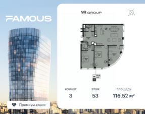 Прямая продажа от застройщика. Продаётся 3-к квартира площадью 116.52 м² с предчистовой отделкой на 53-м этаже премиального небоскреба Famous. Срок ввода в эксплуатацию - IV кв. 2024 г. Выдача ключей - III кв. 2025 г. Если к слову "будущее" подобрать архитектурный синоним, им непременно станет премиальный небоскреб Famous. Он расположен в закрытом квартале "Фили Сити" - настоящем городе в городе, окруженном зеленым ореолом из аллей и скверов, с инфраструктурой для жизни и отдыха самых взыскательных горожан. Резидентов Famous ждет особая привилегия - открывающиеся из окон бескрайние панорамы, с видами на парк Фили, Поклонную гору, Москва-реку и Москва-Сити. Эффектный ультрасовременный 57-этажный небоскреб, пластичный в нижней части, наверху трансформируется и взмывает ввысь выразительной скульптурой с обтекаемой поверхностью. Фасад украшенный стеклянными эркерами в виде прямых треугольных призм, словно олицетворяет собой идеально собранный пазл. Это безупречное решение для тех, кто не боится лидерства и высоты, не ищет простых путей, держит высокую планку во всем, не останавливается на достигнутом и живет в ритме мегаполиса. Не зря логотип Famous украшает графический элемент Триумфальной арки на Кутузовском проспекте - символ успеха и жизненных побед. Особенности дома: - Проект премиум-класса рядом с центром Москвы - Футуристическая авторская архитектура от бюро ADM - Ультрасовременные инженерные решения современных небоскрёбов - Элегантное решение орнаментальной композиции фасада от бюро ADM - Famous станет первым проектом в Москве с интерьерами лобби от международной архитектурной компании A ++ - Панорамное остекление по всему фасаду, головокружительные виды на достопримечательности Москвы, парк Фили, Москва-Сити и Поклонную гору - Европейский подход к благоустройству: площадь с фонтанами, парк-променад, детские и спортивные площадки, зоны отдыха - Продуманная концепция инфраструктуры: уютные кафе и рестораны, супермаркет, фитнес-студия, службы сервиса, детский центр развития - Эргономичные планировки от бюро Олега Клодта Транспортная доступность: - Удобный выезд на Кутузовский проспект и ТТК - В пешей доступности станции метро "Фили", "Багратионовская" и "Парк Победы" Компания MR Group предлагает своим клиентам специальные условия приобретения квартир в рамках программ ипотечного кредитования от банков-партнеров. Продается 3-комнатная квартира от застройщика рядом с метро Фили.