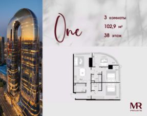 Старт продаж! Квартиры в Москва-Сити в самой инновационной башне One. В продаже 3-комнатная квартира площадью 103.00 м² на 50-м этаже. Новый современный жилой комплекс премиум-класса One расположен в самом сердце деловой жизни столицы — в Москва-Сити, где захватывающая дух архитектура встречается с безупречным уровнем комфорта. One находится в Пресненском районе, в пешей доступности от станции метро "Деловой центр". Проект был разработан выдающимся архитектором Сергеем Кузнецовым при участии международного бюро Gensler. Уникальная скульптурная форма башни, вдохновленная лентой Мебиуса, создает новый узнаваемый силуэт делового центра и задает непревзойденный стандарт вертикальной жизни. По замыслу архитекторов, жилой комплекс представляет собой две вертикальные башни, соединенные в нижней и верхней точках. На 85 этаже расположен Sky Garden — самый высокий в Европе парк с оазисом природы и секретным садом в облаках, а на 83 этаже парит стеклянный мост Sky Bridge с панорамными видами. Важнейшей особенностью комплекса является его всесторонняя инфраструктура по принципу All-in-One: закрытый клуб с лаунжами, приватным кинотеатром, бильярдной, рабочими зонами и фитнесом. Здесь же расположена торговая галерея бутиков и премиальный гастро-кластер, концепцию которого разработал известный ресторатор Александр Сысоев. Особенности комплекса: - Эксклюзивная архитектура от главного архитектора Москвы - Самый высокий в Европе небесный сад Sky Garden на 85 этаже - Панорамное остекление от пола до потолка во всех квартирах - Smart-инженерия и сервис уровня пятизвездочного отеля - Приватная клубная инфраструктура All-in-One - Трехуровневый паркинг с зарядными станциями для электрокаров - Круглосуточная безопасность и консьерж-сервис Расположение комплекса: - Пешая доступность от станции метро "Деловой центр" - 2 минуты до Экспоцентра - 5 минут до Дома Правительства - 7 минут до Кутузовского проспекта