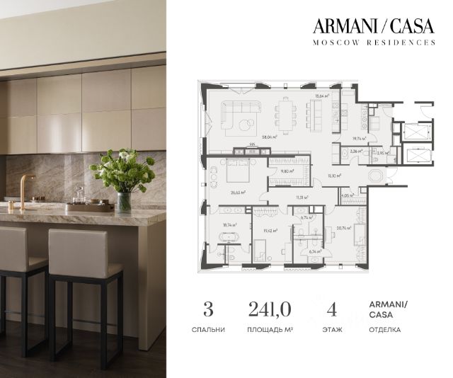 Последние лоты в продаже! КВАРТИРЫ ГОТОВЫ К ПРОЖИВАНИЮ Armani / Casa Moscow Residences — первый и единственный в России проект, созданный в партнерстве с легендарным итальянским домом Armani. Это не просто жилье, а произведение искусства, где каждая деталь отражает безупречный вкус и изысканность итальянского стиля. Комплекс расположился в самом аутентичном историческом районе Москвы — Якиманке. Эта локация известна как "Золотой треугольник искусств": всего в нескольких шагах находятся Третьяковская галерея, Дом культуры ГЭС-2 и новое здание Третьяковки. Всего 26 резиденций в доме создают особую атмосферу приватности и камерности. Это самый камерный проект в Замоскворечье, где каждый житель сможет насладиться тишиной и уютом, вдали от городской суеты. Архитектура создана знаменитым британским бюро John McAslan + Partners. Фасад из натурального камня и элементы из анодированной латуни создают неповторимый облик, гармонично вписывающийся в исторический контекст района. Эксклюзивный дизайн интерьеров от Armani/Casa, премиальные кухни с техникой Gaggenau, сантехника Armani/Roca, инженерная доска из дуба, итальянский мрамор в отделке и дровяные камины с порталами из мрамора создают атмосферу истинной роскоши. Комплекс оснащен всем необходимым для роскошной жизни: фитнес-центр с оборудованием Technogym, спа-зона с хаммамом, детская игровая комната, собственная кофейня и винный бутик, подземный паркинг с прямым доступом к лифтам. Профессиональное управление комплексом обеспечивает безупречный сервис на высшем уровне. Отдельные сервисные лифты для персонала гарантируют комфортное разделение потоков движения. Круглосуточный консьерж-сервис берет на себя все заботы резидентов, обеспечивая максимальный комфорт проживания. Квартиры готовы к переезду! Доступна беспроцентная рассрочка на 1 год