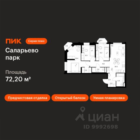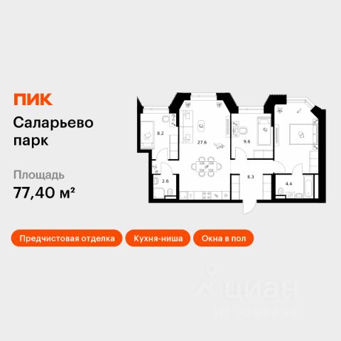 Продаётся 3-комн. квартира площадью 62,6 кв.м на 6 этаже 18 этажного дома (Корпус 74.4, Секция 4) проекта ПИК Саларьево парк. Светлый просторный подъезд на уровне земли, функциональная планировка, большие окна, предчистовая отделка. Жилой район "Саларьево парк" расположен в Новой Москве, в четырёх километрах от МКАД по Киевскому шоссе. Две станции метро: "Саларьево" и "Филатов луг", — находятся в пешей доступности от проекта. Дойти до них можно за 510 минут. В квартале уже создана качественная среда, где есть абсолютно всё для полноценной жизни, работы и отдыха. Благодаря удобному расположению проекта всё важное будет рядом: детские сады, школы, кафе и рестораны, шопинг в торговых центрах, фитнес и даже аэропорт. Все корпуса в квартале гармонично сочетаются, образуя единую городскую среду. Между собой их объединяет невысокая этажность и натуральная цветовая гамма. Здесь приятно гулять и проводить время на улице всей семьёй. В "Саларьево парке" создана уникальная образовательная среда, включающая в себя шесть школ, рассчитанных на 6 250 учеников. Две из них уже открыты, их посещает 2 300 детей. Также на территории "Саларьево парка" находится 12 детских садов, один из которых с бассейном. Сейчас уже открыты 7 садов. В "Саларьево парке" открыта уникальная игровая площадка — PlayHub "Оригами". Здесь есть ручей, горка-труба и рельефные холмы. Взрослые смогут отдохнуть в уютном кафе, пока дети играют. Также на территории проекта есть SportHub — большая спортивная зона, разделённая по интересам и возрастам. Здесь можно заниматься разными видами спорта: футболом, баскетболом, волейболом и стритболом. Зимой центральную часть площадки превращают в каток. Во дворах-парках жилого квартала есть места для отдыха, детские и спортивные площадки. На первых этажах домов расположены магазины, кафе и полезные сервисы. Также вблизи проекта есть несколько масштабных торговых центров. До ТЦ "Саларис" пять минут пешком, до "Рио", Metro Cash & Carry и "Леруа Мерлен" — пять минут на автомобиле. Артикул 1006551 (Застройщик ООО "Специализированный Застройщик "Тирон") Купить 3-комнатную квартиру с отделкой рядом с метро Саларьево.