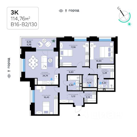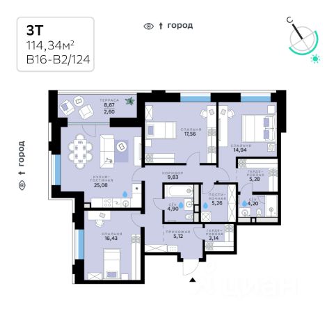 В продаже — трехкомнатная квартира с чистовой отделкой, общей площадью 111,62 кв. м. Квартира расположена на втором этаже тринадцатиэтажной секции дома класса Адвансд в новом районе СберСити, который строит Сбер. Дом находится на первой береговой линии Москвы-реки. Дом возводится по технологии монолитного строительства. Отделка фасадов выполнена из природного камня, глазурованной плитки и алюминия. В квартире проведены работы по улучшению шумоизоляции, установлены двухкамерные стеклопакеты с низкоэмиссионными стёклами, минимизирующими теплопотери. В санузлах — тёплый пол. В доме расположены: • уютное лобби, • лапомойка, • общественная терраса, • коворкинг для жителей, • собственная спортивная студия, • колясочная и велосипедная комната на первом этаже, • детская игровая комната, • подземный паркинг. СберСити — это новый жилой и деловой район на западе Москвы, в одном из самых экологически чистых и престижных мест столицы. Это первая в России и крупнейшая в мире инновационная городская среда, созданная по международным стандартам зелёного проектирования. Здесь внедряются решения в области энергоснабжения, вакуумного мусороудаления, тестирования зелёных технологий, а в дальнейшем — системы искусственного интеллекта для управления домами и городской инфраструктурой. Строительство проекта началось в 2021 году, заселение первых корпусов — с лета 2024-го. Общая площадь территории — 461 га, из них более 2,5 млн кв. м жилья и около 833 тыс. кв. м офисных пространств. Будет построено 7 школ, 13 детских садов и 2 поликлиники. В СберСити будут жить 65 тыс. человек и работать 70 тыс. Развитием территории занимается АО "Рублёво-Архангельское", входящее в группу Сбер. СберСити — место, где хочется жить, работать и растить детей. Переезжайте в СберСити!