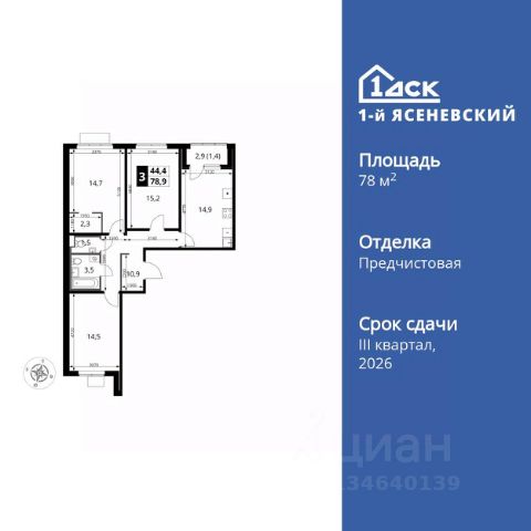 Прямая продажа от застройщика! Жилой Комплекс класса Комфорт Плюс. Продаётся 3-к квартира номер 377 общей площадью 78.9 кв.м. на 9-м этаже 9 этажного здания. Отделка Whitebox. Цена с учётом скидки. Особенности квартиры: - Квартиры рядом с метро - м. Корниловская 9 мин пешком - 63 га лесопарка за окнами - Школа c it-кластером и бассейном. 2 детских сада - Мастер-зона с гардеробной. Просторное место для отдыха и удобного хранения вещей. - Просторная спальня, в которой можно разместить большую кровать. - Распашная планировка - отличное сочетание удобства и свободы. - Гостевой санузел - комфорт и удобство для ваших гостей. - Увеличенная высота потолков - ощущение простора и легкости. - Просторная кухня - место для семейных ужинов и кулинарных экспериментов. - Линейная кухня - функциональность и практичность в одном решении. - Гардеробная - удобство для хранения и организации вещей. - Ниша под шкаф - компактное и удобное место для вещей. - Лоджия - уютное место для отдыха и тишины. Квартира с предчистовой отделкой (White box). Вам не придется заниматься черновыми и трудоёмкими работы, а чистовую отделку и дизайн - сделайте на свой вкус. Информация о комплексе: В жилом комплексе комфорт-плюс класса "1-го Ясеневского" доступны преимущества двух стилей жизни. Ведь в пешей доступности метро, школа с 25-метровым бассейном и IT-кластером и при этом целых 63 га благоустроенного Троицкого лесопарка под окнами, где так приятно дышать свежим воздухом и слушать пение птиц. Собственная закрытая территория "1-го Ясеневского" представляет собой уютный оазис. Здесь и зеленый освещенный бульвар для прогулок, система велодорожек, маленькая городская площадь, кафе, пекарни и кофе поинты. А еще дворы без машин и многоэтажная парковка. Изюминка территории - фруктовые деревья во дворах и городские сады. "1-й Ясеневский" - всего в 1 км от МКАД, на территории новой Москвы. Жилой комплекс, где есть все необходимое для современного человека. Транспортная доступность: До метро "Корниловская" - 12 минут пешком До метро "Тютчевская" - 25 минут пешком До метро "Теплый стан" - 10 минут на транспорте До метро "Ольховая" - 30 минут на общественном транспорте Личный автотранспорт: Выезд на Калужское шоссе - 500 м МКАД - 1 км Внутренняя инфраструктура: ЖК "1-й Ясеневский" можно назвать идеальным местом для жизни семьи с детьми. Здесь буквально за домом находится Троицкий лесопарк - излюбленное место прогулок молодых родителей. А во внутренних дворах под детские площадки выделены специальные зоны. Они оборудованы всем, что нужно для счастливого детства: современными и максимально безопасными качелями, песочницами и лазалками. Оборудование и игровые сценарии на детских площадках спроектированы вместе с командой детских психологов для правильного развития ребенка и для повышения их интереса. Также рядом с домом два детских садика, один из которых уже построен и школа на 1100 мест. Школу по праву можно назвать образцовым учебным заведение
