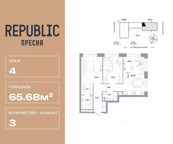 *ЖК Brodsky - видовая 3-комнатная резиденция 154,1 м² в Хамовниках.*