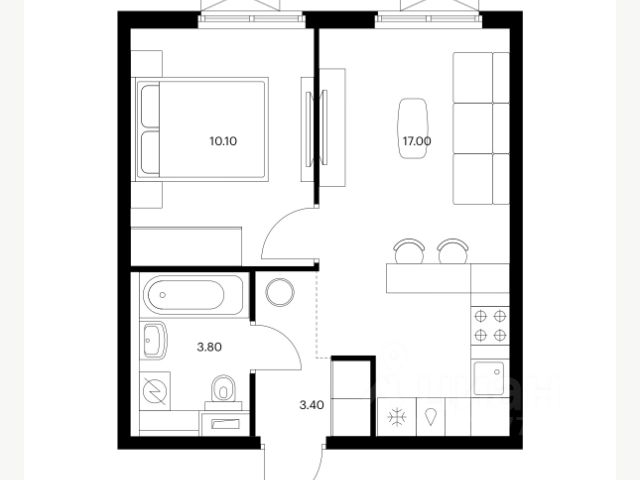 Евро-двушка: Просторная кухня-гостиная площадью 15,9 кв.м. станет сердцем вашего дома, идеальным местом для семейных ужинов и встреч с друзьями. Она включают в себя уютный холл (3,1 кв.м.), современный санузел (3,7 кв.м.) и, конечно же, кухню-гостиную.
