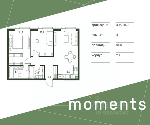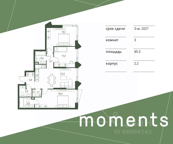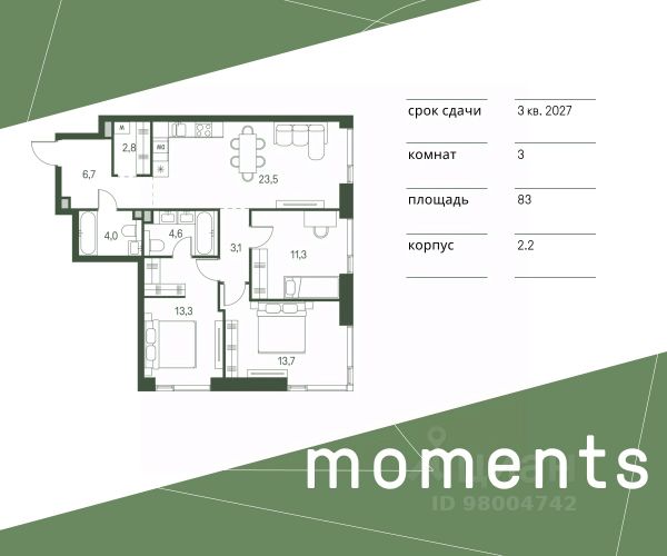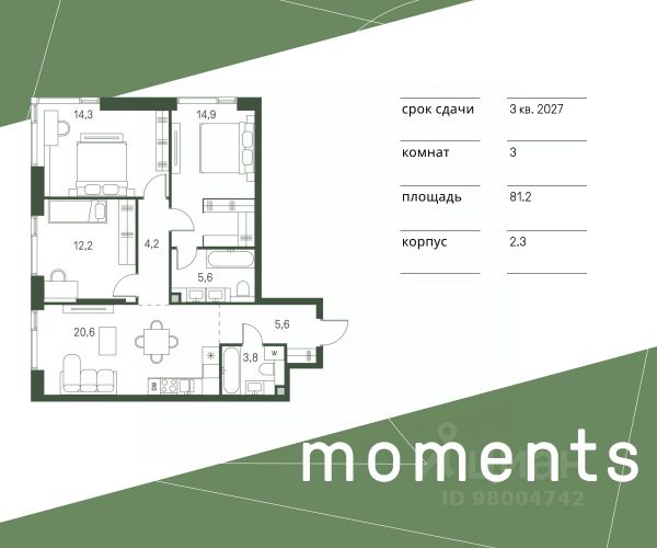 Цена указана с учётом скидки при 100%-й оплате, несубсидированной ипотеке, рассрочке (кроме программы "Рассрочка 0%"). Продается 3-комнатная квартира площадью 89.60 кв. м с отделкой. Квартира находится на 11 этаже 26-этажного корпуса 4, в новом жилом комплексе бизнес-класса Level Войковская, расположенном рядом с живописным заповедником "Покровское-Стрешнево" (застройщик - компания Level Group/Левел групп). Прекрасная транспортная доступность - 7 мин. пешком до станции МЦК "Балтийская"; - 15 мин. пешком до станции метро "Войковская"; - 8 мин. на машине до ТТК; - 15 мин. на машине до центра Москвы; - 20 мин. на машине до Москва-Сити. Продуманный архитектурный проект - стильная архитектура от мастерской Фефелова В. В.; - панорамные виды на парки, Химкинское водохранилище и Останкинскую башню; - лобби с высотой потолков до 6,45 метров; - более 20 видов планировочных решений, включая редкие форматы квартир с террасой и увеличенной высотой потолков до 5,42 метров; - 2 варианта дизайнерской отделки в корпусе 4, предлагаются как дополнительная опция к отделке white box: стиль Modern в светлых холодных тонах и стиль Classic в нейтральной бежевой гамме. Квартиры в корпусах 3 и 5 сдаются без отделки. Расположение Level Войковская строится в престижном Северном округе Москвы. Развитая инфраструктура и живописная природа переплетаются в единый ансамбль, столь значимый для комфортной жизни. Войковский район окружают парки и набережные. В шаговой доступности - парк "Покровское-Стрешнево", не более 15-ти минут на велосипеде занимает путь до Тимирязевского парка и 9-ти минут до парка усадьбы Михалково. Рядом более 60 школ, 75 дошкольных учреждений, 17 государственных и 6 частных вузов, 25 супермаркетов, 4 торговых центра, среди которых ТЦ "Метрополис" и ТЦ "Авиапарк". Внутренняя инфраструктура На территории жилого комплекса предусмотрены коммерческие помещения: кафе, ресторан, пекарня и другие сервисы откроются на первых этажах корпусов. Для жителей будет доступен отапливаемый подземный паркинг на 244 машино-места с доступом с любого этажа на лифте. На территории паркинга будет расположено 125 кладовых помещений для хранения сезонного инвентаря. Лобби и благоустройство Дизайн лобби Level Войковская создан совместно с бюро BLANK. Это уютные гостиные, где хочется задержаться. Теплая цветовая гамма, ресепшен, зоны ожидания, лапомойки и гостевые санузлы - каждая деталь превращает лобби в комфортное продолжение вашего дома. 1,15 га площади в первых двух этапах строительства отведено под приватный внутренний двор, который спроектирован совместно с бюро "Правда". Детские площадки для всех возрастов, спортивные пространства для йоги, воркаута и петанка, уютные зоны для тихого отдыха или работы. Здесь утро начинается с вдохновения, а вечер наполнен приятными моментами. Лифты Комфортное перемещение внутри жилого комплекса будут обеспечивать надёжные лифты с доступом в паркинг с жилых этажей. В каждом корпусе предусмотрено по 3 грузопассажирских лифта.