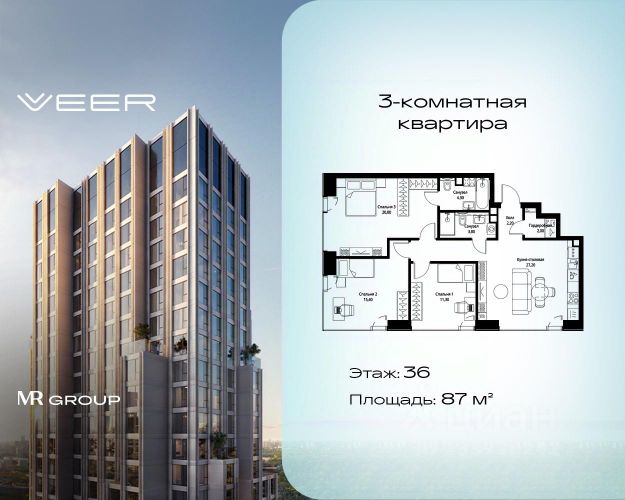 Прямая продажа от застройщика. Продаётся 3-комнатная квартира общей площадью 74.70 м² с предчистовой отделкой в ЖК VEER на 42-м этаже 59 этажного дома. Жилой комплекс бизнес-класса VEER от компании MR — это футуристичный мультиквартал, расположенный в престижной локации на западе Москвы. Благодаря переменной высоте башен — двух 22-этажных, 46-этажной и двух 59-этажных — возникает динамичность в силуэте комплекса, а его яркий образ вносит разноплановость в архитектурный пейзаж района. Расположение и транспортная доступность: • VEER удобно расположен в непосредственной близости от Кутузовского проспекта, обеспечивая быстрый доступ к центральным районам Москвы • Комплекс находится непосредственно напротив самого большого природного заказника в Москве - парка "Долина реки Сетунь", а за семь минут можно доехать до памятника садово-паркового искусства, Троекуровского леса. • Всего в 15 минутах - центр города, самая престижная бизнес-школа управления России "Сколково", дом творчества "Переделкино". • 18 минут пешком до м. "Давыдково" • Открытие новых станций метро в шаговой доступности в будущем Инфраструктура: Разнообразить свой день резиденты VEER смогут также проводя больше времени на свежем воздухе. Двор разделен на 4 зоны разных эмоций и действий, которые пересечены и соединены веерными прогулочными маршрутами: • Спортивная площадка устроена в глубине "Кленовой рощи" • В "Чайном домике" будет создан навес с утеплением для отдыха в любую погоду • Площадки для детей воплотятся в "Волшебный лес" с цветами, зеркалами и световым дизайном • "Центральная площадь" устроена у водного оазиса живописного пруда. Компания MR предлагает своим клиентам специальные условия приобретения квартир в рамках программ ипотечного кредитования от банков-партнеров. Продам 3-комнатную квартиру с отделкой от застройщика в округе ЗАО в Москве.
