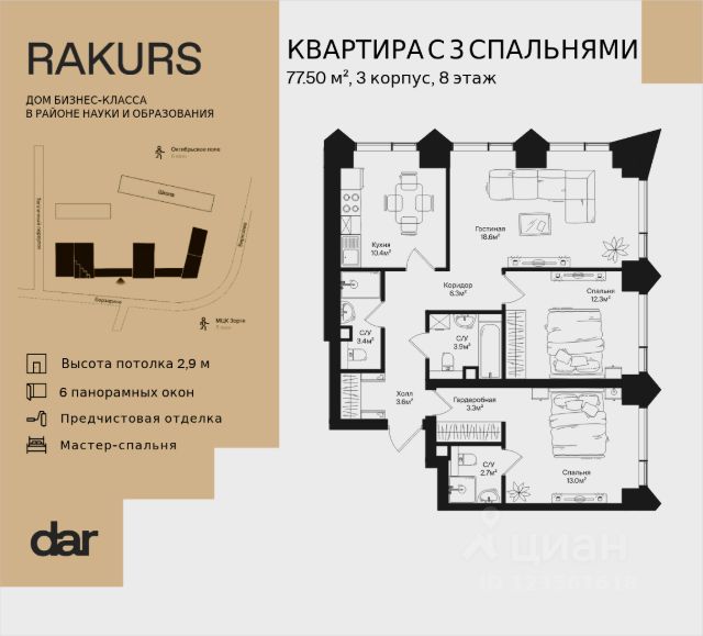 Квартира общей площадью 160,1 кв. м расположена на 5-м этаже жилого дома "Никитский 6". Из окон открывается вид на Никитский бульвар и Центральный Дом журналиста. Планировочное решение включает панорамную гостиную, 2 мастер-спальни с личными ванными и гардеробными комнатами и сервисные помещения. Во всех квартирах предусмотрена высококачественная авторская отделка с кухонными модулями, бытовой техникой и полностью оборудованными ванными комнатами. В интерьере предложены природные оттенки и натуральные премиальные материалы: дерево, различные породы камня, элементы металла. Выполнена интеграция ультрасовременных инженерных систем с элементами управления smart home и multiroom. "Никитский 6" расположен в одном из культовых районов столицы — на Арбате, на пересечении Никитского бульвара и улицы Воздвиженка. В пешей доступности от дома находятся всемирно известные культурные достопримечательности, образовательные учреждения, зеленые бульвары для прогулок, модные рестораны и бутики Никитской улицы и всего в пяти минутах ходьбы Александровский сад. Для дополнительного комфорта резидентов "Никитский 6" предусмотрена клубная инфраструктура: просторное комфортабельное лобби, зал для частных занятий йогой и пилатесом, библиотека и пространство для деловых встреч. На трех подземных уровнях дома расположен просторный паркинг с увеличенными габаритами машино-мест, скоростными зарядками для электромобилей, storage-rooms и сервисными помещениями для персонала. 3-комнатная квартира в новостройке с отделкой в Москве.