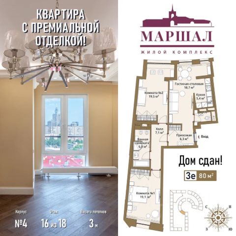 Жилой комплекс премиум-класса "Ренессанс" расположен на Рубцовско-Дворцовой улице старинного района Сокольники, в нескольких минутах ходьбы от знаменитого парка "Сокольники" - самого большого парка Москвы и одного из крупнейших в Европе, где круглый год можно прекрасно проводить время всей семьей. Из панорамных окон премиального бренда Schuco открываются завораживающие виды на сияющие в лучах солнца купола церквей и храмов, изумрудную зелень легендарного парка "Сокольники" и национального парка "Лосиный остров", излучины реки Яузы с величественной гранитной набережной, старинные здания, среди которых дворец императрицы Елизаветы Петровны, небоскребы "Москва-Сити", Останкинскую телебашню и приватную, охраняемую территорию комплекса с концепцией "двор без машин", изысканным ландшафтным дизайном, богатой коллекцией растений, пространствами для отдыха с роскошным фонтаном с красивой подсветкой, элегантной перголой, большими шахматами, детскими городками и спортивными площадками. Роскошный интерьер лобби: натуральный испанский мрамор, вертикальный фонтан, репродукции картин эпохи Возрождения, великолепная итальянская люстра ручной работы с подвесками из хрусталя CutCrystal и муранского стекла, иранские ковры и дизайнерская мебель. Лифты премиум-класса ThyssenKrupp. Консьерж-сервис. На этажах мусорокамеры закрытого типа. Из квартиры можно связаться с консьержем по видеодомофону британской компании BAS-IP. Уникальная транспортная доступность: 5 мин. на авто - до ТТК и Русаковской эстакады; 10 мин. - до Садового кольца и улицы Земляной Вал; 15 мин. - до Кремлевской набережной. В шаговой доступности - ст. м. и БКЛ "Сокольники" и "Электрозаводская". Развитая собственная инфраструктура: подземный паркинг, здание фитнес-центра с бассейнами, объекты торговли и сферы услуг. Отличная инфраструктура респектабельного района Сокольники: детские сады, элитные общеобразовательные, музыкальные и спортивные школы, ТЦ, рестораны, банки. Купить 3-комнатную квартиру от застройщика 494 УНР в Москве.