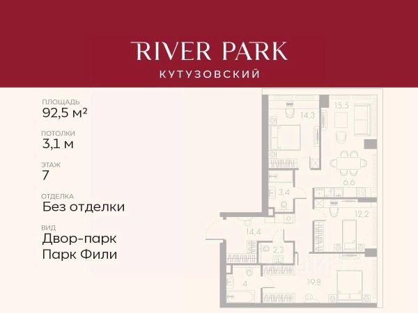 Продается 3-к квартира площадью 102.0 кв.м. на 16-м этаже в жилом комплексе премиум-класса River Park Кутузовский в Башне Lazur Tower О жилом комплексе. Премиальный жилой комплекс River Park Кутузовский строится в одном из самых престижных районов столицы Дорогомилово, на берегу Москвы-реки. Яркий проект в стиле эко-футуризма станет самым масштабным и самым высотным ЖК в локации Кутузовского проспекта. В проекте будет впервые воплощена концепция Family Premium. Расположение и Транспортная доступность: - На берегу Москвы-реки, напротив Москва-Сити - 600 метров до Кутузовского проспекта - Удобный съезд с ТТК - Прямой выезд на МКАД по Северному дублеру Кутузовского проспекта. - В пешей доступности 3 станции метро: Фили, Парк Победы, Кутузовская, а также станция МЦД Фили. Архитектура от именитого бюро ADM отличается уникальной пластикой фасадов - башни словно парят в воздухе, играя гранями как драгоценные камни. Жилой комплекс состоит из 5-ти небоскребов с home park на закрытой территории и внешней торговой галереей с открытым доступом. В закрытом внутреннем дворе уникальная по насыщенности клубная инфраструктура - 5 Towers Club только для жителей: - Многофункциональная спортивная площадка (баскетбол, футбол, воллейбол, большой теннис) - Детский игровой клуб NEMO - Life Rooms с караоке, барной стойкой и meeting room - Music salon - Gedonist Club с бильярдной - Beauty station - Гольф-симулятор Впервые в Москве lounge зоны на крыше небоскребов, только для жителей: - Всесезонные беседки иглу - Джакузи - Барная стойка - Грили - Площадка для занятий йогой - Самые высоки качели на крыше в России - Видовые площадки Благоустройство комплекса занимает 3 гектара и разработано мировым экспертом по городским парковым ландшафтам - голландским бюро WEST8. Концепция проекта дать жителям отдохнуть от городского ритма, расслабиться среди природы и натуральных материалов. В home park будут высажены многолетние деревья по принципу no allergy. - Зеркальный пруд с арт-объектом - Две детские площадки - Work out с навесом - Цветущий сад - Party lounge - Видовая зона отдыха с очагом - Солярий На территории жилого комплекса планируется строительство крупного образовательного центра: детский сад на 200 мест и школа на 460 мест.