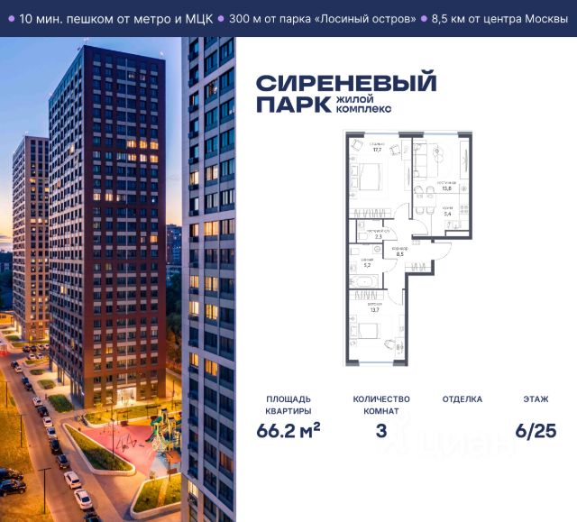 3-комнатная квартира площадью 79,9 кв.м., расположенная на 47 этаже 53-этажного небоскреба бизнес-класса это именно то, что вы ищете! AFI Tower — это не просто жилой комплекс. Это место, где каждая деталь заботливо продумана, чтобы сделать вашу жизнь удивительной и комфортной. Транспортная доступность - AFI Tower расположен близко к проезду Серебрякова, что обеспечивает быстрый доступ к Третьему Транспортному Кольцу и МКАД. За 15 минут можно легко добраться до ключевых транспортных магистралей в зависимости от дорожной ситуации. - В пешей доступности находятся станции метро "Свиблово" и "Ботанический сад" — это дает возможность жителям легко перемещаться по городу. Рядом также расположена станция Московского центрального кольца у "Ботанического сада". Архитектура: - Башня AFI Tower привлекает своим смелым архитектурным решением. Фасад, выполненный в виде мягкой волны, делает здание узнаваемым и уникальным в контексте стандартных высоток. С высотой в 182,4 метра, она становится неповторимой доминантой в Свиблово. Внутренняя инфраструктура: - Лобби AFI Tower выделяется современным дизайном, высокими потолками от 2,9 м до 3,3 м и использованием качественных материалов. Это визитная карточка здания, предоставляющая посетителям первое впечатление. Внутреннее пространство продумано для комфорта и функциональности. Характеристики квартир: - Здесь каждая квартира — уникальная история. От 19 до 116 м² площади, три варианта отделки — светлый, темный или white box, чтобы ваш дом отражал ваш вкус и стиль. Принимайте решение не просто о покупке жилья, а о создании своего собственного уютного уголка. Удобства внутри AFI Tower: - В самом доме целый мир удобств и развлечений. Ресторан, библиотека, прачечная и коворкинг — каждое место наполнено энергией и возможностями. Вечерами, уютная кинозона с кинопроектором и настольными играми создает атмосферу веселья и отдыха. Экология и окружение: - Жить в AFI Tower — значит быть частью уникального окружения. Близость к пруду и зеленому скверу придает местности неописуемое очарование. Вид из окон на Москву, ВДНХ и парки создают вдохновляющий пейзаж. А безопасность и удобство парковки добавляют приятные моменты к вашему образу жизни. Купить 3-комнатную квартиру от застройщика AFI Development в Москве.