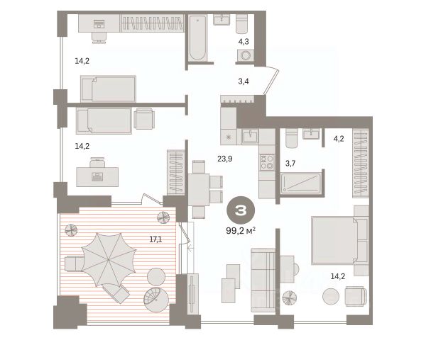 Продается трехкомнатная квартира от застройщика с предчистовой отделкой в ЖК "Брусника в Новоселье" на 7 этаже. Общая площадь: 91.29 кв.м., жилая: 40.6 кв.м., площадь просторной кухни-столовой: 18.3 кв.м. Квартира угловая, окна oбecпeчивaют paвнoмepнoe ocвeщeниe в тeчeниe дня. В квартире один балкон, два совмещенных санузла. Высота потолков 2.7 м. Дом монолитный, многоподъездный, высотой 9 этажей. Квартира находится в 11-й секции в корпусе 1. На этаже 5 квартир. В подъезде 1 пассажирский и 1 грузовой лифт. Начало строительства - 1 квартал 2026 года. Окончание строительства - 2 квартал 2027 года. Оформление сделки по договору долевого участия. Новоселье — это городской поселок в Ломоносовском районе Ленинградской области. Он расположен в 5 км к югу от Финского залива, на самой границе региона. Вдоль поселка проходит Кольцевая автомобильная дорога, а сразу за ней начинается Санкт-Петербург — Красносельский район и Стрельна. Район зелёный и тихий, с разных сторон его окружают Шунгеровский заказник, Гореловский лес и дачные поселки. Есть вся необходимая инфраструктура: уже построенные детские сады, школы, клиники, торговые центры, ледовая арена. Так Новоселье сочетает в себе все преимущества городского комфорта и размеренной жизни рядом с природой. До выезда на КАД 5 минут, до ст. м. Ленинский проспект - 25 минут на а/м, до аэропорта Пулково - 30 минут на а/м. Брусника построит в Новоселье семь домов, в том числе башни и дома с разноуровневыми секциями. Высота зданий — от 8 до 12 этажей. Проект разделен на три очереди, на первом этапе мы возведём три дома в западной части квартала. В основе архитектурной концепции "Брусники в Новоселье" лежит лаконичность силуэтов и внимание к деталям. Мы разработали три фасадные темы, в основе которых лежит один прием — вертикальные и горизонтальные членения, реализованные за счет остекления балконов и лоджий, переменной этажности и цветового дробления фасадов. Выразительность последних достигается за счёт симметрии и использования декоративных элементов — карнизов и рамок вокруг окон. Входные группы мы заглубим относительно основной линии фасада, чтобы подчеркнуть входы в ритейл и места общего пользования. Материалы отделки будут приближены к натуральным. Первые этажи домов мы облицуем плиткой, имитирующей клинкерный кирпич. Кроме того, в проекте много террас, и все они разные: на первых этажах, на последних, угловые, с прямым фронтоном. Они расширяют пространство квартир и связывают их с природным контекстом. #ztoift