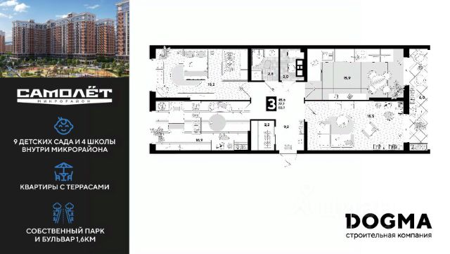 • ✓ В базе Циан 2,6 тыс. 3-комнатных квартир от застройщика DOGMA в Москве