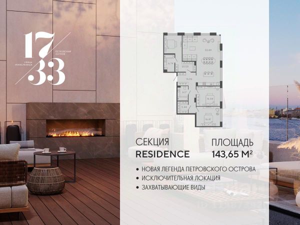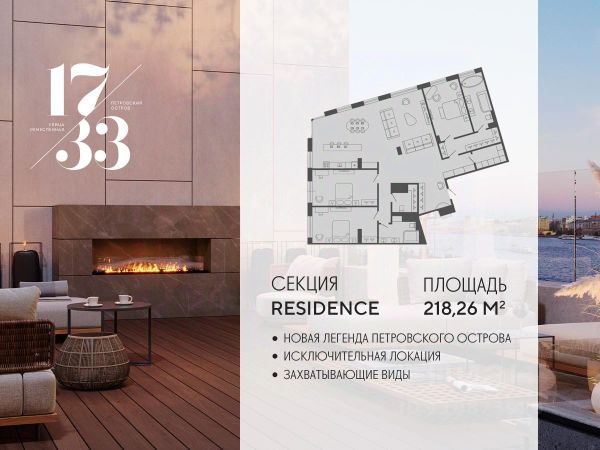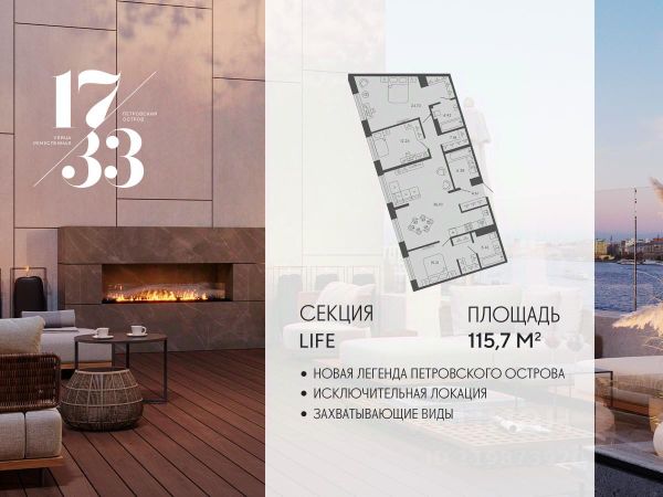Сдаем в 2026 году! Апартамент 803 в Комплексе "17/33 Петровский остров" О проекте: Премиальный комплекс резиденций для истинных ценителей изысканной архитектуры, непревзойденного сервиса и необыкновенной панорамы Санкт-Петербурга. Уникальное расположение между Малой Невой и Петровским прудом подарит будущим резидентам неповторимое ощущение жизни на собственном уединенном острове. Уникальная локация. Проект расположен в объятьях главных островов Петербурга — Петроградской стороны, Васильевского и Крестовского, и в самой зеленой и выигрышной части Петровского — на первой линии Малой Невы, между величественной рекой и тихим Петровским прудом. До ключевых точек притяжения, любимых парков, шопинга и развлечений — пара минут на авто. 100% видовых апартаментов. Виды на Малую Невку, на Петровский пруд.; Проект разделен на три формата: Club, Life, Residence; 5-8 этажей; высота потолка до 7 метров; 1000 м2 общественных пространств; фитнес и СПА; кинозал и зал для семейных торжеств; коворкинг и детский клуб; лаундж с библиотекой; терраса площадью 120 м2 для резидентов; ELEMENT создаёт инновационные жилые и коммерческие объекты в Санкт-Петербурге и Москве, которые устанавливают новые стандарты эффективной жизни в мегаполисах.