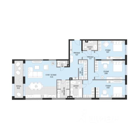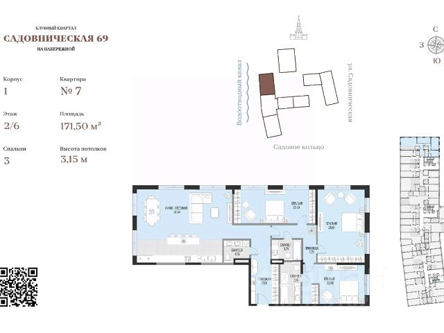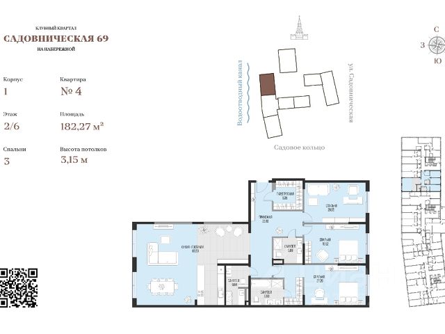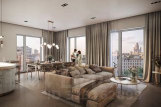 Просторная светлая квартира площадью 126,15 кв.м. Из окон квартиры открываются живописные виды на Москва-реку, старинные мосты и величественные башни Кремля. Витражное остекление выходит на тихую гладь реки или внутренний сад — такое решение обеспечивает максимум естественного света и красивые панорамы.