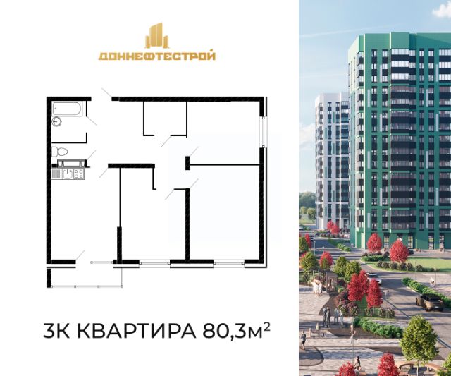 • ✓ В базе Циан 296 3-комнатных квартир от застройщика ГК ДОННЕФТЕСТРОЙ в Москве