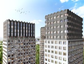 - Разноуровневые секции с эстетичные башнями и контрастными цветовыми сочетаниями, напоминающими башни в Сити.