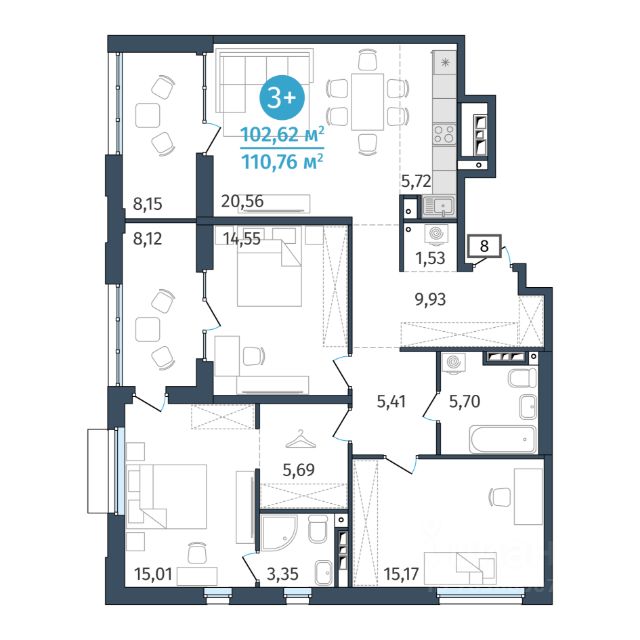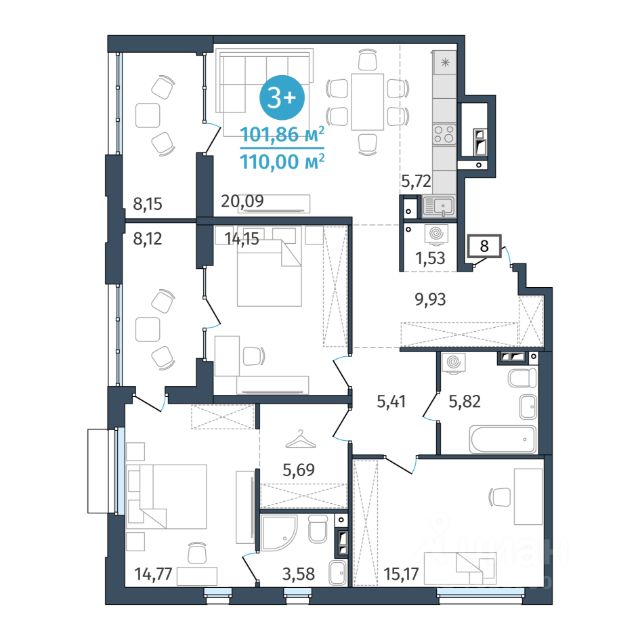 • ✓ В базе Циан 126 3-комнатных квартир от застройщика ГК ТИС (Тюмень) в Москве