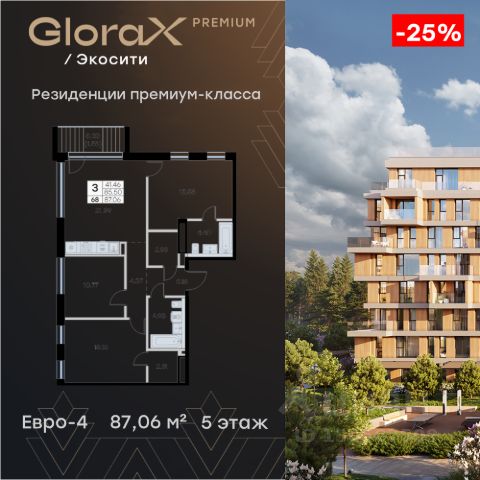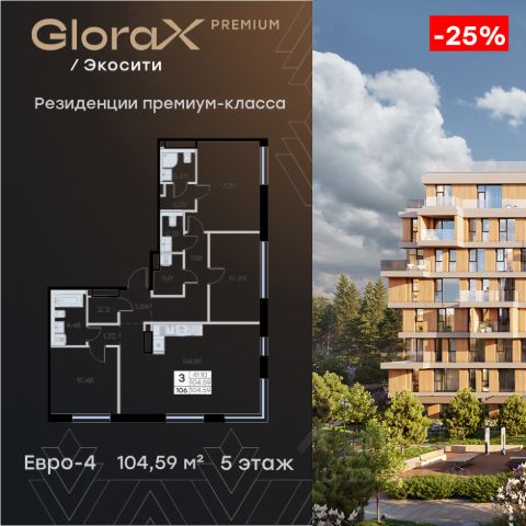 • ✓ В базе Циан 298 3-комнатных квартир от застройщика GloraX в Москве