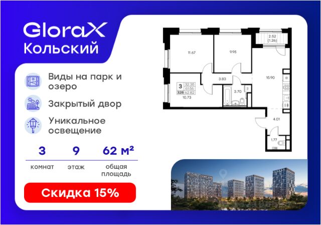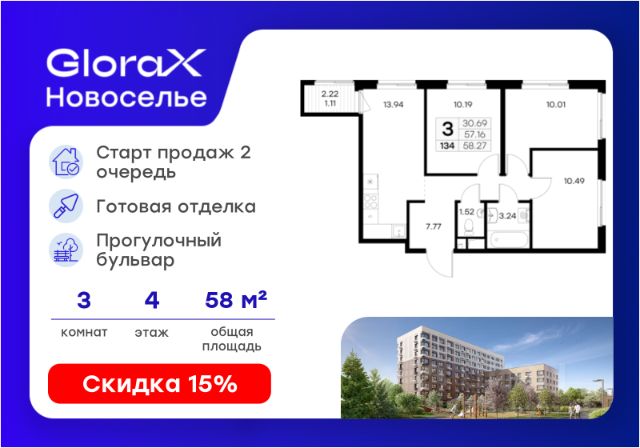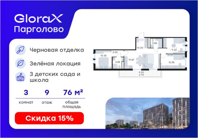 Продается 3-комн. квартира на 2-м этаже в проекте бизнес-класса GloraX Заневский. Общая площадь лота составляет 94,31 кв. м, из которых 40,43 кв. м отведено под жилую и 15,99 кв. м под кухонную зону. Номер квартиры - 1. Дом сдан. Ключи сразу! Преимущества квартиры: кухня-гостиная; гардеробная; 2 санузла. - Отделка White box - Увеличенные окна - Квартиры с террасами - Система "Умный дом" - IP-видеонаблюдение, Free Wi-fi на территории - Отапливаемый паркинг - Детская разновозрастная площадка - Комьюнити-центр для жильцов GloraX Заневский - современный комплекс бизнес-класса в шаговой в 2-х минутах от метро "Ладожская", для тех, кто не готов идти на компромиссы в вопросах комфорта и качества жизни. Мультифункциональный проект на 494 квартиры для стильных активных людей живущих в ритме большого города. GloraX Заневский располагается в экологически благоприятной локации. В пешей доступности находятся сад и 4 парка: парки Малиновка, Малоохтинский, Ладожский, Заневский и Яблоновский сад. У жителей мегаполиса есть уникальная возможность отвлечься от городской суеты и повседневных забот. 63 типа планировок от классических до евро-форматов, квартиры с террасами и уникальные квартиры с видом на динамичный Заневский проспект. Переменная этажность позволяет солнцу в равной степени освещать все квартиры, а увеличенная площадь остекления получить максимум дневного света. В проекте будет реализована собственная развитая инфраструктура: магазины и рестораны, детские площадки, фитнес-клуб, комьюнити-центр, уютные закрытый двор и прогулочный бульвар. GloraX Заневский не оставит равнодушными и любителей шоппинга, ведь всего в нескольких минутах пешей прогулки находятся крупные торговые галереи, кинотеатры, кафе и рестораны, среди которых ТЦ "Платформа", "Перрон", "Ладожские ряды", "Заневский каскад", "Нео", "Польза" и "Мебель Холл". GloraX Заневский это проект, использующий современные и технологичные решения, создающие комфорт и безопасность в повседневной жизни резидентов комплекса. Инновационная система "Умный дом" в жилом комплексе и в квартире обеспечивает согласованную работу всех инженерных систем и позволяют настраивать и опционально подключать необходимый дополнительный функционал. Для владельцев автомобилей мы спроектировали подземный отапливаемый паркинг на 295 машиномест, куда можно спуститься на лифте прямо со своего этажа. Цена указана при 100% оплате или стандартной ипотеке. Узнайте подробности в Отделе продаж.