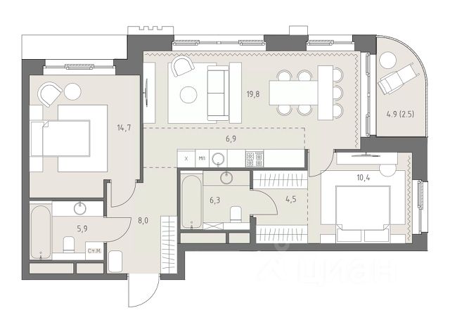 Продуманная европланировка, которую легко зонировать под ваши запросы. Потолки от 3,1 м.