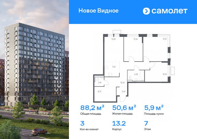 Строим кварталы для жизни с заботой о будущем. Предлагается 3-комнатная квартира комфорт-класса 76,85 кв.м в корпусе 18.2 на 11 этаже, в ЖК "Новое Видное" Квартира без отделки. Доступность опции "отделка" и возможность комплектации мебелью и декором уточняйте у застройщика. Приобрести квартиру возможно по специальным акциям от застройщика, с текущими условиями акций можно ознакомиться в блоке "Акций". Цена динамическая и может отличаться, уточняйте актуальность у застройщика. Жилой комплекс "Новое Видное" — масштабный проект из 30 урбан-блоков, который находится рядом с Видновским лесопарком и в 8 км от МКАДа. В отделке фасадов — декоративный кирпич в белом, сером, бежевом и терракотовом оттенках. Такое сочетание оттенков словно нежная игра света на песчаной глади озера — тонкие линии и мягкие переливы создают волшебный узор, отражающий красоту природы. Жить здесь легко и комфортно: рядом с домом будет все важное и необходимое — от магазинов и кафе до плейхабов и набережной. В "Новом Видном" вы сможете слушать джазовые мотивы города и наслаждаться освежающей близостью леса. "Новое Видное" — это: 1. До МКАДа — 8 км 2. 20 минут ходьбы или 5 минут на авто до ж/д станции Калинина 3. 25 минут на авто до аэропорта Домодедово 4. В будущем — прямой выезд на Каширское шоссе 5. Видновский парк и Пуговичинский пруд рядом с домом 6. Музей-заповедник "Горки Ленинские" в нескольких минутах на авто 7. 12 минут на авто до конных клубов "Задор", "Юланта" и "Казачий Дозор" 8. 4 школы, 7 детских садов, поликлиника, станция скорой помощи 9. Приватные дворы без машин 10. Покет-парки для спокойного отдыха 11. Спортивные и игровые площадки 12. Входы в корпуса без ступеней и высоких порогов 13. Помещения для колясок в лобби 14. Панорамное остекление балконов 15. Велодорожки по всей территории квартала