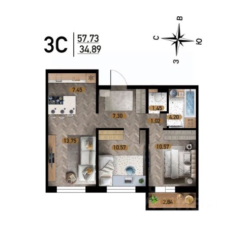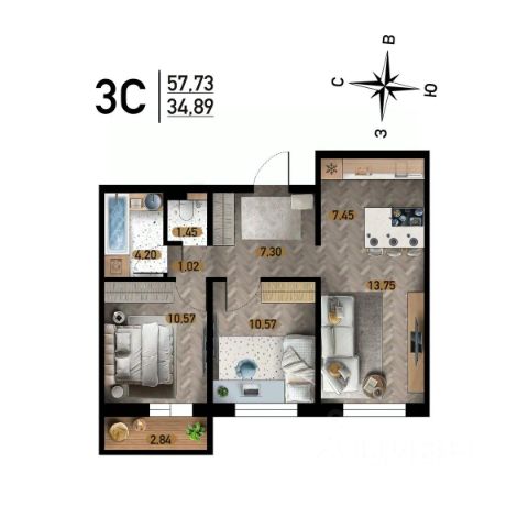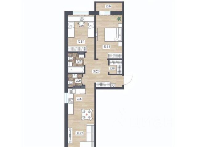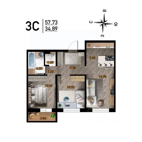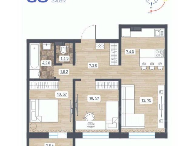 Продаётся 3-комнатная квартира в строящемся доме (Дом 11), срок сдачи: IV-кв. 2025, общей площадью 62.56 кв.м., на 1 этаже. Расположение, транспортная доступность Жилой комплекс "Радуга Сибири", занимающий территорию 10,4 га, расположен на берегу озера, в Ленинском районе Новосибирска. Это экологически благоприятный регион на левом берегу Оби. В двадцати минутах пешком находится железнодорожная платформа пригородного направления "Ипподром". Электричка доезжает до центра Новосибирска за 25 минут. От комплекса организовано движение маршрутного такси 12, на котором можно доехать до центра Левобережья (метро "Площадь Маркса") и главного железнодорожного вокзала Новосибирска. Путь на автомобиле до площади Маркса или международного аэропорта займет пятнадцать минут, до центра Новосибирска - двадцать минут. Район развивается: по соседству с "Радугой Сибири" построен жилой микрорайон "Чистая Слобода", планируется расширение Порт-Артурской улицы, продление улицы Титова. В 2016 году было запущено движение скоростного трамвая. Инфраструктура В цокольных этажах домов находятся коммерческие помещения. Вблизи комплекса "Радуга Сибири" расположены два детских сада, строится школа, планируется открытие поликлиники. За двадцать минут можно дойти до общеобразовательной школы 86 - в ней был построен спортивный зал и сделан ремонт в 2015 году. В пешей доступности находятся: Дворец культуры "Сибтекстильмаш" с кружками и секциями, Троице-Владимирский собор и Новосибирский ипподром. Вблизи ЖК много зеленых насаждений, пешком можно дойти до парка и сквера. На расстоянии 3 км от комплекса расположены МНТК "Хирургия глаза" им. С.Н Федорова, плавательный бассейн и спорткомплекс "Заря" со стадионом, зимним катком, футбольными и хоккейными площадками. Надежность застройщика Проект комплексной застройки "Радуга Сибири" реализует ООО "Развитие", которое создано в 2012 году и входит в состав промышленно-строительного концерна "Сибирь". Концерн работает с 1990 года, среди завершенных объектов - жилые комплексы "На Рябиновой", "Нарымская Жемчужина", "Тулинское", "Березовое". В 2012 году компания заняла первое место среди застройщиков Новосибирска по объемам ввода жилья. Градостроительный план ЖК "Радуга Сибири" был разработан в 2015 году, в июле этого же года выдано разрешение на строительство. Архитектура Жилой комплекс "Радуга Сибири" - это восемь монолитных 17-этажных домов. Здания возводятся по традиционной монолитной технологии: перекрестно-стеновая система с несущими монолитными продольными и поперечными внутренними стенами, объединенными железобетонными перекрытиями. При строительстве применяется тоннельная опалубка Teknik-L. Квартиры сдаются с предчистовой отделкой, качественными деревянными стеклопакетами, улучшенной шумоизоляцией. Стены выровнены и оштукатурены, полы выровнены. В квартирах выполняется разводка электричества и вертикальная разводка системы отопления, подводятся трубы холодной и горячей воды, канализации, устанавливаются счетчики на электроэнерг