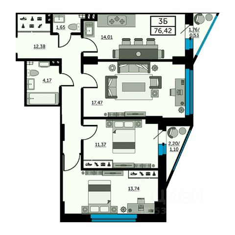 Продаётся 3-комнатная квартира в сданном доме (23-я Линия, 54с6 (Позиция 7)), срок сдачи: IV-кв. 2024, общей площадью 77.27 кв.м., на 12 этаже. Удобное расположение жилого комплекса позволит не только каждый день наблюдать все великолепие открывающегося вида на реку, но и возможность всего за 10 минут добраться до центра города.
