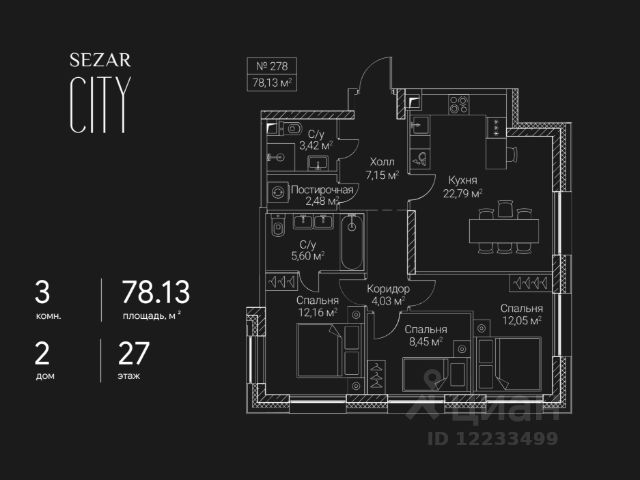 Продается 3-комнатная квартира в ЖК СЕЗАР СИТИ на 5 этаже. Общая площадь квартиры составляет 72,15 кв.м. Квартира без отделки. Срок сдачи - 2027 год. Архитектурный облик СЕЗАР СИТИ в полной мере выражает глубокую философию ар-деко, в основе которой - красота, удовольствие и комфорт. Облик каждого дома деликатно продолжает традиции величественной архитектуры зданий на престижных магистралях Москвы. В рельефной пластике экстерьеров корпусов особенно эффектно выделяется арочный стиль. Комбинации материалов и форм, обилие элементов декора придают фасадам зданий собственный неповторимый облик и изысканно дополняют их грацию. Планировки всех квартир спроектированы по стандартам премиум-класса, когда функциональность помещений дополняет высокий комфорт проживания. Элементы лобби тщательно продуманы, чтобы впечатлять и вдохновлять. Пространство каждого лобби оформлено дорогими материалами и мебелью. В большинстве квартир предусмотрены эркеры и просторные лоджии. Для комфорта жителей предусмотрен подземный паркинг с кладовыми помещениями и автомойкой. В каждом лобби расположена стойка консьержа. В концепции приватных дворов лежат узнаваемые элементы и формы классических парковых пространств, в т. ч. амфитеатры, аркады и галереи. СЕЗАР СИТИ - новый проект компании, в полной мере сочетающий в себе все качества недвижимости особой ценности. Преимущества локации: - Хорошевский район - это престижный и динамично развивающийся район Москвы с богатой историей. Здесь открываются транспортно-пересадочные узлы, строятся деловые кластеры, создаются новые общественные пространства и парки. - СЕЗАР СИТИ находится в самом центре Большого Сити. Концепция развития этой территории предусматривает формирование принципиально нового городского центра с современной общественно-жилой застройкой. Позвоните сегодня в офис продаж, и мы с удовольствием пригласим вас в гости. Менеджер подробно расскажет о преимуществах жилого комплекса за чашкой ароматного кофе.