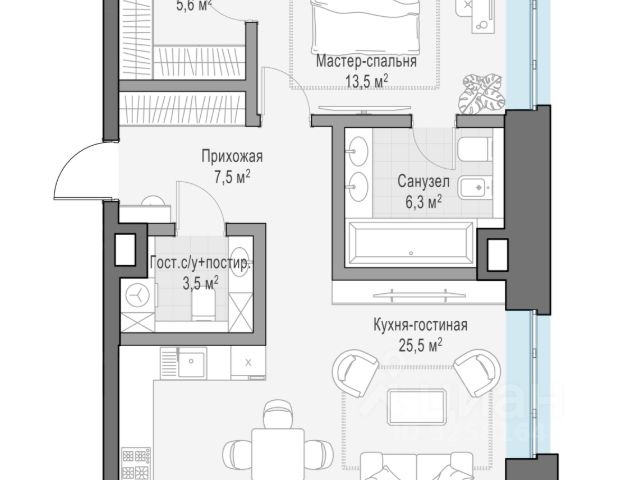 Гибкие программы рассрочки: 0% без переплат и удорожания; первый взнос от 10%. • Уникальное планировочное решение с детально продуманными функциональными зонами • Все комнаты изолированы друг от друга • Большая кухня-гостиная с широким панорамным окном • Два санузла • Вместительная гардеробная комната • Малая спальня с большим панорамным окном • Средняя комната с угловым остеклением • Мастер-блок, состоящий из спальни с панорамным окном, гардеробной и приватной ванной комнаты О проекте FIVE TOWERS — первый жилой небоскрёб на Ленинском проспекте и самый высокий дом столицы за пределами делового кластера "Москва-Сити". Премиальный небоскрёб представляет собой ультрасовременное, высокотехнологичное здание, идеальный синтез стилей культовых высоток Москвы и небоскребов Нью-Йорка и поражает воображение уникальными видами, монументальной роскошью и совершенством форм. Величественная панорама, открывающаяся из окон вашей квартиры, завораживает: легендарные сталинские высотки, шпиль главного корпуса МГУ, "Москва-Сити", спорткомплекс "Лужники". Окружение 75-этажный жилой комплекс премиум-класса расположен в историческом Донском районе. Транспортная инфраструктура проекта сделает жизнь резидентов FIVE TOWERS комфортной и продуманной: удобные выезды на ТТК и Садовое кольцо, 10 минут до метро "Ленинский проспект", 11 минут на МЦК до Москва-Сити. Рядом расположены крупные деловые и бизнес-центры, а в шаговой доступности — 500 га парков, образуемых Музеоном, Парком Горького и парком "Воробьевы горы". Инфраструктура Архитектурное бюро Олега Клодта разработало дизайн общественных пространств FIVE TOWERS: гранд-лобби, камерную библиотеку c камином и лифтовую зону. Все необходимые сервисы сосредоточены на первых этажах небоскрёба: кафе, винотека, салон красоты, фитнес и детский клуб. Приватный Sky Club 49 — респектабельный лаундж с открытой террасой и ограниченным доступом на 49 этаже — только для резидентов. Квартиры в FIVE TOWERS Все квартиры в FIVE TOWERS будут сданы с предчистовой отделкой (white box). Это позволит будущим резидентам комплекса сосредоточиться на творческой части ремонта, не связанной с организацией черновых работ. В жилом небоскребе FIVE TOWERS запланировано 596 премиальных квартир и 87 типов планировочных решений, которые можно адаптировать под личные запросы и сценарии проживания. В комплексе премиум-класса представлены не только двух- и трехкомнатные квартиры с угловым остеклением, но и однокомнатные с видом на две стороны и трехкомнатные квартиры с видами на три стороны, что является редким предложением на рынке недвижимости. 3-комнатная квартира от застройщика на проезде 5-й Донской в Москве.