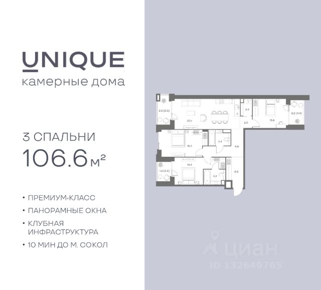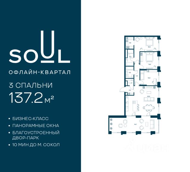 Цены указаны с условием 100% оплаты и стандартной ипотеки. Прямая продажа от застройщика! Продается 3-к. квартира номер 620 общей площадью 76.6 кв.м. на 6-м этаже 24 этажного дома, Корпус 9. С отделкой White Box Max. Проект бизнес-класса SOUL от девелопера FORMA. До метро Сокол 10 мин пешком. Архитектура от британского бюро SimpsonHaugh. Благоустройство дворов — Gillespies и GAFA. Территория состоит из культурного парка и приватных дворов. Озеленение в эстетике лесного оазиса. Насыщенное благоустройство: прогулочные тропинки, релакс-зоны, пряный и сенсорный сады, развивающие детские площадки и воркауты. В центре проекта объект культурного наследия — общественное пространство Изофабрика, построенная в 30-х годах по проекту архитектора Георгия Гольца. Здесь будут располагаться мастерские для взрослых и детей, выставочные залы, коворкинги, образовательный центр, рестораны и кафе. Квартиры с панорамными окнами, мастер-спальнями, гардеробными, классическими балконами и лоджиями, видовыми террасами. Высота потолков от 2,9 до 3,5 м. В проекте 2 детских сада на 100 и 200 малышей. Клубная гостиная, фитнес-рум, детская игровая комната, дизайнерские лобби, подземный паркинг и келлеры. Продается 3-комнатная квартира от застройщика в районе Аэропорт в Москве.