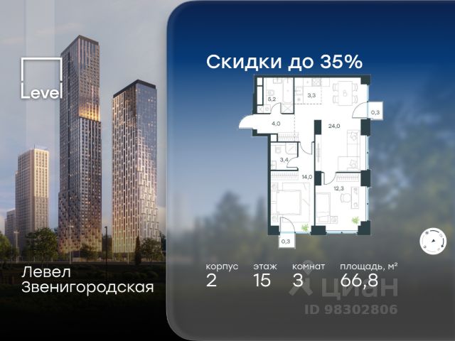 Трёхкомнатная квартира площадью 80,80 кв. м. на 12 этаже нового дома премиум-класса Высотка на Жукова "Высотка на Жукова" - это современный дом, который олицетворяет дух настоящей Москвы, сочетая в себе величественность архитектуры московского ренессанса, расположение в лесу, современные инженерные решения и премиальный сервис. Высотка расположена в парке, внутри природного комплекса, в районе Хорошёво-Мнёвники, рядом с проспектом Маршала Жукова, всего в 15 минутах от центра Москвы. Дом окружён лесом с четырех сторон, и жизнь в нём сравнима с загородной резиденцией, но в черте города. Стиль и оформление: Монументальный неоклассицизм этой высотки сочетает лучшие черты различных эпох — от античности и барокко до ар-деко. Архитектурные элементы включают ступенчатые аркады, французские балконы и открытые павильоны-бельведеры, украшенные гризайлью, обелисками и изысканными вазами. Современные технологии: Инновационные технологии концерна КРОСТ позволяют использовать долговечные современные материалы, что делает здание не только красивым, но и функциональным. Удобства и инфраструктура: - Инфраструктура дома продумана таким образом, чтобы каждый житель имел возможность сосредоточиться на самом главном — себе и своём здоровье. - На территории квартала появятся физкультурно-оздоровительный комплекс и современный медицинский центр с широким перечнем услуг для поддержания физического здоровья в шаговой доступности. - Консьерж-сервис 24/7; служба Room Service, уборка квартир, химчистка, клининг, мойка окон; уход за животными: выгул, кормление, груминг. - Расположенная вблизи Москвы-реки и Серебряного бора, а также парка Ходынское поле и Берёзовой рощи, "Высотка на Жукова" окружена лесным массивом Октябрьского радиополя, что обеспечивает, пожалуй, лучшую с точки зрения экологии локацию. - Развитая инфраструктура на первом этаже дома позволит наслаждаться каждым днем и получать всё необходимое в границах дома: ресторан от известного московского ресторатора, продуктовый магазин, центр эстетики и другие удобства. - Величественные входные группы с потолками до 7 метров включают: многофункциональную зону коворкинга, двухуровневую библиотеку, лаундж-зоны с камином, просторные колясочные. - Внутренние дворы с зонами для отдыха и детскими площадками, а также паркинги для автомобилей. - Близость к образовательным учреждениям, медицинским учреждениям и торговым центрам, что делает "Высотку на Жукова" идеальным выбором для семей. Продам 3-комнатную квартиру от застройщика в районе Хорошево-Мневники в Москве.