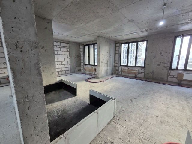 Черновая отделка даёт возможность реализовать авторский проект без переплаты за чужой ремонт. Высота потолков до 6,35 м и панорамное остекление от пола до потолка создают настоящий второй свет — характеристика, встречающаяся только в единичных пентхаусах Москвы. Минимум несущих конструкций открывает планировочную свободу: кухня-гостиная 70 м² с фронтальным видом на парк (пространство для семейных ужинов и приёма гостей с видом на закат), 34 спальни с гардеробными, кабинет, детская зона, 45 санузлов на двух уровнях. Потенциал до 8 функциональных комнат — редкий формат в сегменте премиум.