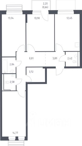 Продаётся 3-комнатная квартира в сданном доме (Корпус 58), срок сдачи: II-кв. 2025, общей площадью 77.1 кв.м., на 1 этаже. Новый жилой комплекс "Рублёвский квартал" от Группы Самолет