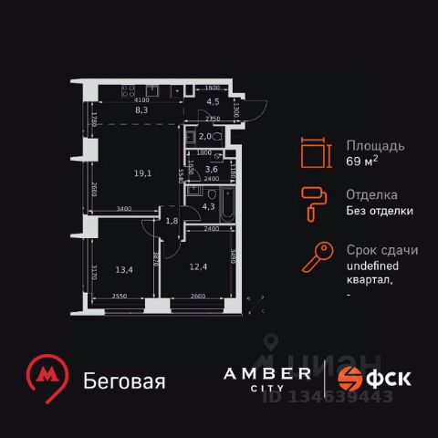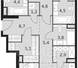 Продаётся 3-к квартира номер 363 общей площадью 90.8 кв.м. на 15-м этаже 44 этажного дома. Отделка Whitebox. Цена с учётом скидки!