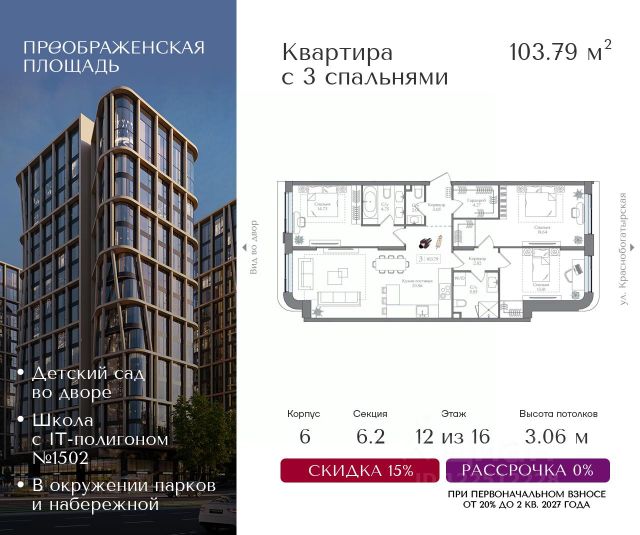 Во дворе комплекса "НАЗАРЕ'" будут места как для спокойного отдыха и работы, так и для игр и спорта. Здесь организованы игровые площадки для детей всех возврастов, места для стритбола и тенниса, а также зона с природным ландшафтом и коворкинг с экологичной деревянной мебелью. Продам 3-комнатную квартиру от застройщика Рядом с метро Черкизовская.