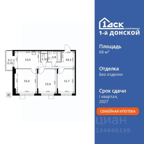 Продаётся 3-комнатная квартира в сданном доме (Ново-Молоковский, 1 (Корпус 13)), срок сдачи: IV-кв. 2024, общей площадью 86.6 кв.м., на 7 этаже. Расположение, транспортная доступность