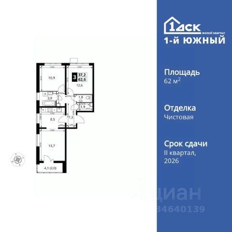 Продаётся 3-комнатная квартира в сданном доме (Ново-Молоковский, 1 (Корпус 13)), срок сдачи: IV-кв. 2024, общей площадью 84.2 кв.м., на 8 этаже. Расположение, транспортная доступность