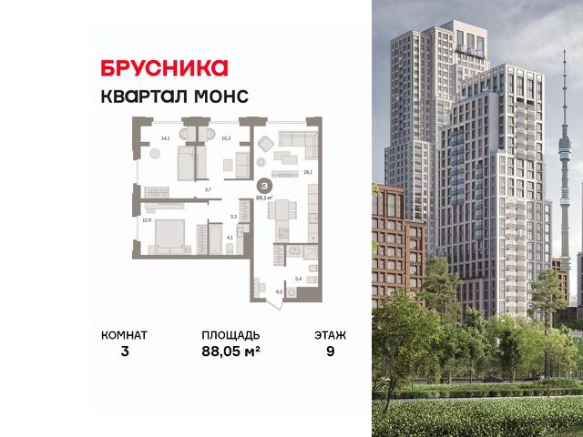 Трёхспальная квартира с двумя балконами. Просторная кухня-гостиная c видом на Останкинскую телебашню. Окна двух спален выходят на ландшафтный двор-парк. "Достижение" - единственный дом с торжественной архитектурой в окружении бескрайних парков на любой вкус: парк "Дубовая роща", обновленный классический парк "Останкино", самый известный парк России ВДНХ и крупнейший в Европе ботанический сад. Дом находится в непосредственной близости от центра города: до Садового кольца на автомобиле - 15 минут, 700 м до станции метро "Бутырская", а от нее всего 3 станции на метро - и вы на Цветном бульваре. Архитектура проекта - современное прочтение торжественного и изящного стиля ар-деко, который, как и сталинский ампир, сформировался в результате развития идей чикагской школы. В доме 6 секций, 115 вариантов продуманных планировочных решений - от уютных студий до просторных пентхаусов с дровяным камином. В каждой квартире предусмотрен полный комплекс систем комфорта: принудительная центральная вентиляция с фильтрацией воздуха, очистка воды до уровня питьевой, круглогодичное горячее водоснабжение, быстрые бесшумные лифты, которые идут прямо в паркинг, продуманная подготовка под кондиционирование и другие технологические решения. В доме "Достижение" общественные пространства и квартира тоже гармонично дополняют друг друга, как части единого целого. Здесь есть инфраструктурный центр Clubhouse только для жителей, открывающий возможности для общения и детского развития: клубная гостиная жителей по стандарту Friend`s Lab и детская игровая комната 250 кв.м. в концепции Kid`s Lab. На площади 1,7 гектара создан живописный парк с террасным склоном, в котором растут луговые травы, кустарники и деревья. Пространство ландшафтного парка разделено на зоны для активного и спокойного отдыха с зелёными уголками для любителей тишины. Для спокойного отдыха: тихие места с беседками и шезлонгами, клубная гостиная в концепции Friend`s Lab с открытой террасой и гамаками, зона для барбекю, смотровая галерея, уютный пруд, а также пять пеших маршрутов для променада. Для активного отдыха: универсальная многофункциональная спортивная площадка, отдельная зона для занятий workout и бесплатный фитнес-зал только для жителей по стандарту Fit Lab. В центральной части парка расположен амфитеатр со сценой для представлений и проведения мероприятий. Для гармоничного развития маленьких жителей - пространства по стандарту Kid`s Lab для гармоничного развития детей всех возрастов: детская площадка, игровая комната, рельефная площадка для общения со сверстниками, где можно заниматься паркуром, танцевать и играть в настольный теннис.