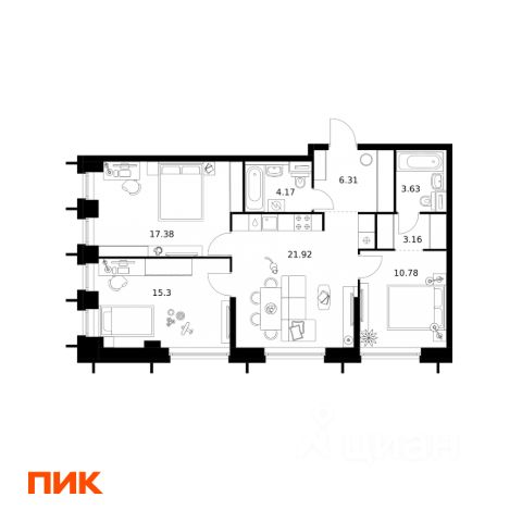 Просторная семейная квартира с 2-мя спальнями, одна из которых мастер-спальня с собственным сан.узлом. Большая кухня-гостинная имеет два больших окна, которые выходят на Березовую Аллею. Благодаря просторным комнатам можно добиться не только удобного планирования функциональных зон, но и дать волю собственным архитектурным взглядам и вкусам. Окна спален выходят на закрытый благоустроенный двор внутри комплекса, что позволит присматривать за детьми из окна. Окна квартиры выходят на две стороны света, и будущие жители смогут наслаждаться солнцем в течение всего дня. "Фестиваль Парк" это продуманный до мелочей жилой комплекс, окруженный зелеными парками и живописными прудами. Настоящая мечта, которая стала реальностью. ЖК "Фестиваль Парк" разместился в престижном Левобережном районе Москвы в двух минутах ходьбы от метро "Речной вокзал". Это одно из лучших мест столицы с точки зрения экологии - вокруг домов разбиты парки и скверы. В пешей доступности от комплекса находятся Парк Дружбы, Фестивальные пруды и набережная Химкинского водохранилища. Преимущества: Панорамные виды из окон Жизнь в окружении парков и водоемов Эффектная современная архитектура Стильные авторские лобби Закрытый благоустроенный двор без машин 2х уровневый подземный паркинг Рядом 25 детских садов, 12 школ Транспортная доступность: 2 мин. до м. Речной вокзал (200 м) 5 мин. до Ленинградского шоссе (650 м) 8 мин. до МКАД (7 км) 13 мин. до ТТК (13 км) 17 мин. до Садового кольца (17 км) 20 мин. до аэропорта Шереметьево (15 км) 8 мин. до ТЦ Метрополис (7 км) 10 мин. до ИКЕА, Мега (9 км) 12 мин. до ТЦ Авиапарк (11 км)