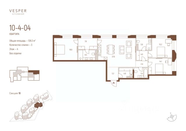 Продаётся 3-комнатная квартира общей площадью 143.00 м² на 17 этаже Жилого Комплекса Бадаевский. О нем говорили. Его ждали. Жилой комплекс "Бадаевский" на Кутузовском проспекте — это место для жизни, которое займет место в истории. Комплекс стал первым в истории московским проектом, победившим в категории Residential на World Architecture Festival. Девелопер Capital Group. В "Бадаевском" исторические здания завода и футуристические "парящие" дома создают единый комплекс, который станет новой достопримечательностью и символом Москвы. Панорамное остекление, террасы и веранды дарят неординарные и захватывающие виды. Благодаря расположению домов и панорамному остеклению, жилые пространства в "Бадаевском" будут наполнены светом. А виды из окон домов-"лент" на Москву-реку, пивоваренный завод, небоскребы "Москва-Сити" и Белый дом дополнены принципиально новым ощущением высоты. На территории Бадаевского завода появится масштабный ландшафтный парк с концепцией "русский лес". Впервые в истории района Дорогомилово у жителей появится прямая связь набережной Тараса Шевченко с Кутузовским проспектом. Близость Москвы-реки добавляет к преимуществам "Бадаевского" природную энергетику и приятные прогулки на свежем воздухе. Подземная парковка позволит сделать территорию завода полностью пешеходной, а сам комплекс представит новый подход к организации открытого и уединенного пространства в центре Москвы. Расположение в начале Кутузовского проспекта делает проект не только престижным, но и удобным: до Третьего транспортного и Садового кольца можно доехать за 5 минут, а Кремль и основные исторические достопримечательности расположены в 15 минутах на автомобиле. Напротив "Бадаевского" находится офисный кластер "Москва-Сити". Для жителей комплекс будет создано не только новое масштабное благоустройство, но и вся необходимая инфраструктура. В исторических корпусах появятся магазины, бутики, кафе и рестораны, коворкинг и крафтовая пивоварня, а в зданиях элеваторов — русская баня. Кроме того, запланирован фермерский рынок и досуговый кластер с музыкальной студией, центром детского творчества и фитнес-центром с бассейном. Продам 3-комнатную квартиру от застройщика рядом с метро Киевская.