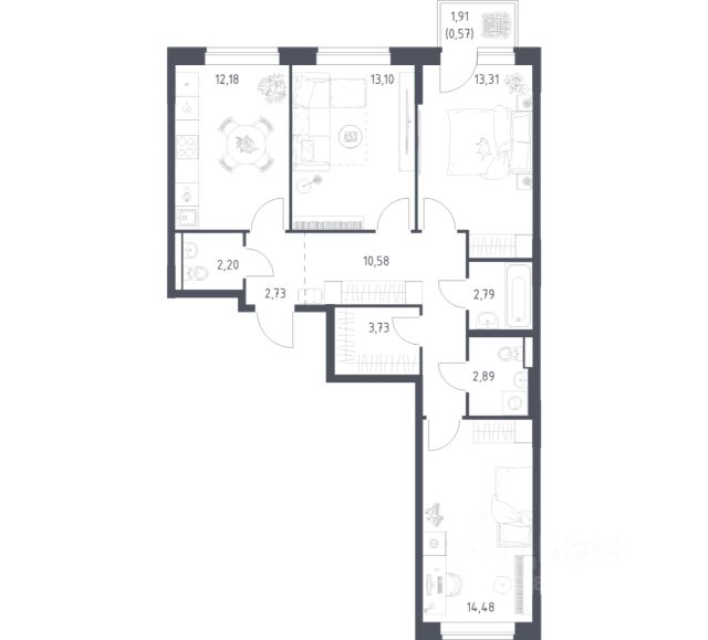 Квартира с кухней-гостиной и тремя спальнями в Квартале Герцена. Особенности планировки: балкон, второй санузел, гардеробная, окна на две стороны, постирочная, предчистовая отделка, французский балкон. Квартиру можно купить онлайн. В квартире выполнена отделка "под чистовую". Установлены окна с двойным стеклопакетом, радиаторы с терморегуляторами. На полу цементно-песчаная стяжка. В квартиры заведены кабели для интернета и ТВ. Входная сейф-дверь не требует замены. Организован поквартирный учёт энергоресурсов (водоснабжение, отопление, электричество). Квартал "Герцена" расположен в Бирюлёве Восточном — районе на юге Москвы. Дорога до ТТК займет всего полчаса на автомобиле, до станции метро и ж/д станции "Царицыно" — 13 минут, а до автовокзала "Южные ворота" — 20 минут. До автобусных остановок можно дойти пешком. В 2027-2028 году откроется новая станция метро "Лебедянская", дорога до неё займет всего 18 минут. Общая площадь "Квартала Герцена" составляет 27,3 га. Дома состоят из разноуровневых секций высотой от 6 до 55 этажей с видовыми террасами и балконами. На территории квартала будет построена поликлиника, детский сад на 350 мест и воспитательно-образовательный комплекс на 1075 мест, а также рестораны, клиники, магазины и салоны красоты. Объявление от застройщика. Ипотека, материнский капитал. Обмен — один из способов покупки. Обмен подойдёт, если вы хотите быстро поменять старую квартиру на новую. Получить ипотеку или рассрочку, а также обменять квартиру можно онлайн. Запишитесь на онлайн-презентацию по телефону или на сайте. квартиры в нашей базе: ГРЦ01.2-Ж4.14.1.