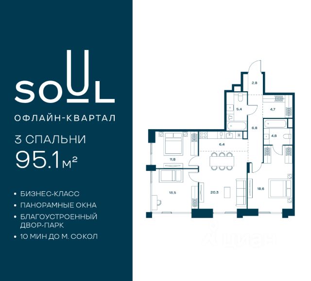 Цены указаны с условием 100% оплаты и стандартной ипотеки. Прямая продажа от застройщика! Продается 3-к. квартира номер 391 общей площадью 85.4 кв.м. на 5-м этаже 18 этажного дома, Корпус 8. Без отделки. Проект бизнес-класса SOUL от девелопера FORMA. До метро Сокол 10 мин пешком. Архитектура от британского бюро SimpsonHaugh. Благоустройство дворов — Gillespies и GAFA. Территория состоит из культурного парка и приватных дворов. Озеленение в эстетике лесного оазиса. Насыщенное благоустройство: прогулочные тропинки, релакс-зоны, пряный и сенсорный сады, развивающие детские площадки и воркауты. В центре проекта объект культурного наследия — общественное пространство Изофабрика, построенная в 30-х годах по проекту архитектора Георгия Гольца. Здесь будут располагаться мастерские для взрослых и детей, выставочные залы, коворкинги, образовательный центр, рестораны и кафе. Квартиры с панорамными окнами, мастер-спальнями, гардеробными, классическими балконами и лоджиями, видовыми террасами. Высота потолков от 2,9 до 3,5 м. В проекте 2 детских сада на 100 и 200 малышей. Клубная гостиная, фитнес-рум, детская игровая комната, дизайнерские лобби, подземный паркинг и келлеры.