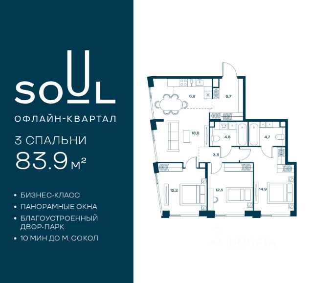 Цены указаны с условием 100% оплаты и стандартной ипотеки. Прямая продажа от застройщика! Продается 3-к. квартира номер 391 общей площадью 85.4 кв.м. на 5-м этаже 18 этажного дома, Корпус 8. Без отделки. Проект бизнес-класса SOUL от девелопера FORMA. До метро Сокол 10 мин пешком. Архитектура от британского бюро SimpsonHaugh. Благоустройство дворов — Gillespies и GAFA. Территория состоит из культурного парка и приватных дворов. Озеленение в эстетике лесного оазиса. Насыщенное благоустройство: прогулочные тропинки, релакс-зоны, пряный и сенсорный сады, развивающие детские площадки и воркауты. В центре проекта объект культурного наследия — общественное пространство Изофабрика, построенная в 30-х годах по проекту архитектора Георгия Гольца. Здесь будут располагаться мастерские для взрослых и детей, выставочные залы, коворкинги, образовательный центр, рестораны и кафе. Квартиры с панорамными окнами, мастер-спальнями, гардеробными, классическими балконами и лоджиями, видовыми террасами. Высота потолков от 2,9 до 3,5 м. В проекте 2 детских сада на 100 и 200 малышей. Клубная гостиная, фитнес-рум, детская игровая комната, дизайнерские лобби, подземный паркинг и келлеры.