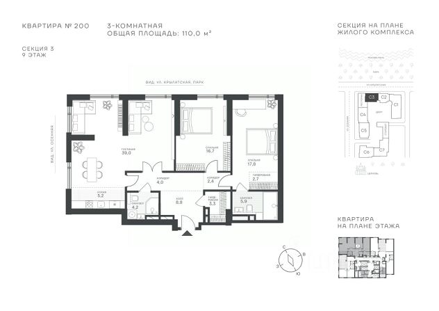 Продается 3-к квартира площадью 97.2 кв.м. на 4-м этаже в ЖК "Клубный квартал Крылатская 33". Прямая продажа от застройщика! Крылатская 33 - проект премиум-класса на западе Москвы от специализированного застройщика "Сияние". Комплекс расположен всего в 15 минутах от Садового кольца и Москва-Сити, а рядом есть большое количество зелёных зон: Крылатский и Москворецкий парки, Серебряный бор, Крылатские холмы - это создает идеальный баланс между приватностью и динамичным ритмом мегаполиса. Квартал сочетает высотные башни до 150 метров и камерные малоэтажные корпуса. Витражное остекление "в пол" наполняет квартиры светом и открывает захватывающие панорамы на Москву-реку и знаковые виды столицы. Здесь каждый найдет то, что подходит именно ему - от уютных студий до роскошных пентхаусов и квартир с собственными террасами. Внутренняя среда жилого комплекса продумана до мельчайших деталей, чтобы резиденты могли продуктивно работать и качественно отдыхать, не покидая территорию: • фитнес-центр, включающий в себя СПА-зону; • коворкинг с кофейней и быстрым интернетом; • общественная гостиная для организации клубных мероприятий; • ресторан с панорамным остеклением; • благоустроенный сад с зоной отдыха; • инновационная игровая площадка для детей всех возрастов; • консьерж-сервис 24/7, современные системы видеонаблюдения и пожаротушения; • двухуровневый паркинг и многое другое. Район Крылатское - точка притяжения для тех, кто выбирает активный образ жизни. В непосредственной близости расположены Гребной канал, Олимпийский велотрек, горнолыжный комплекс "Лата Трэк", гольф-клуб и парковые зоны. В проекте действуют привлекательные условия покупки: - выгода до 10% при 100% оплате (действует на ограниченный пул квартир, подробности уточняйте в отделе продаж). - рассрочка от застройщика 0% с первоначальным взносом от 20% на срок до 30.06.2027.