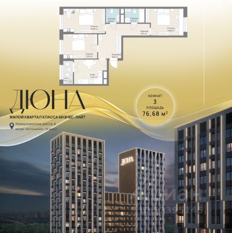Продаётся 3-комнатная квартира в строящемся доме (Корпус 3), срок сдачи: II-кв. 2028, общей площадью 76.68 кв.м., на 25 этаже. Многоквартирный жилой комплекс с подземной автостоянкой и встроенно-пристроенным ДОУ на 120 мест по адресу: Московская область, г.о. Котельники, Новорязанское шоссе, вл. 6, комплекс 1