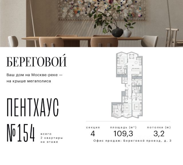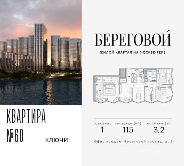 Продается 3-к квартира площадью 97.2 кв.м. на 4-м этаже в ЖК "Клубный квартал Крылатская 33". Прямая продажа от застройщика! Крылатская 33 - проект премиум-класса на западе Москвы от специализированного застройщика "Сияние". Комплекс расположен всего в 15 минутах от Садового кольца и Москва-Сити, а рядом есть большое количество зелёных зон: Крылатский и Москворецкий парки, Серебряный бор, Крылатские холмы - это создает идеальный баланс между приватностью и динамичным ритмом мегаполиса. Квартал сочетает высотные башни до 150 метров и камерные малоэтажные корпуса. Витражное остекление "в пол" наполняет квартиры светом и открывает захватывающие панорамы на Москву-реку и знаковые виды столицы. Здесь каждый найдет то, что подходит именно ему - от уютных студий до роскошных пентхаусов и квартир с собственными террасами. Внутренняя среда жилого комплекса продумана до мельчайших деталей, чтобы резиденты могли продуктивно работать и качественно отдыхать, не покидая территорию: • фитнес-центр, включающий в себя СПА-зону; • коворкинг с кофейней и быстрым интернетом; • общественная гостиная для организации клубных мероприятий; • ресторан с панорамным остеклением; • благоустроенный сад с зоной отдыха; • инновационная игровая площадка для детей всех возрастов; • консьерж-сервис 24/7, современные системы видеонаблюдения и пожаротушения; • двухуровневый паркинг и многое другое. Район Крылатское - точка притяжения для тех, кто выбирает активный образ жизни. В непосредственной близости расположены Гребной канал, Олимпийский велотрек, горнолыжный комплекс "Лата Трэк", гольф-клуб и парковые зоны. В проекте действуют привлекательные условия покупки: - выгода до 10% при 100% оплате (действует на ограниченный пул квартир, подробности уточняйте в отделе продаж). - рассрочка от застройщика 0% с первоначальным взносом от 20% на срок до 30.06.2027.