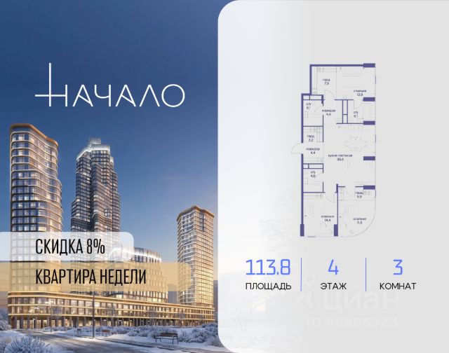 Старт продаж! Квартиры в Москва-Сити в самой инновационной башне One. В продаже 3-комнатная квартира площадью 97.10 м² на 40-м этаже. Новый современный жилой комплекс премиум-класса One расположен в самом сердце деловой жизни столицы — в Москва-Сити, где захватывающая дух архитектура встречается с безупречным уровнем комфорта. One находится в Пресненском районе, в пешей доступности от станции метро "Деловой центр". Проект был разработан выдающимся архитектором Сергеем Кузнецовым при участии международного бюро Gensler. Уникальная скульптурная форма башни, вдохновленная лентой Мебиуса, создает новый узнаваемый силуэт делового центра и задает непревзойденный стандарт вертикальной жизни. По замыслу архитекторов, жилой комплекс представляет собой две вертикальные башни, соединенные в нижней и верхней точках. На 85 этаже расположен Sky Garden — самый высокий в Европе парк с оазисом природы и секретным садом в облаках, а на 83 этаже парит стеклянный мост Sky Bridge с панорамными видами. Важнейшей особенностью комплекса является его всесторонняя инфраструктура по принципу All-in-One: закрытый клуб с лаунжами, приватным кинотеатром, бильярдной, рабочими зонами и фитнесом. Здесь же расположена торговая галерея бутиков и премиальный гастро-кластер, концепцию которого разработал известный ресторатор Александр Сысоев. Особенности комплекса: - Эксклюзивная архитектура от главного архитектора Москвы - Самый высокий в Европе небесный сад Sky Garden на 85 этаже - Панорамное остекление от пола до потолка во всех квартирах - Smart-инженерия и сервис уровня пятизвездочного отеля - Приватная клубная инфраструктура All-in-One - Трехуровневый паркинг с зарядными станциями для электрокаров - Круглосуточная безопасность и консьерж-сервис Расположение комплекса: - Пешая доступность от станции метро "Деловой центр" - 2 минуты до Экспоцентра - 5 минут до Дома Правительства - 7 минут до Кутузовского проспекта