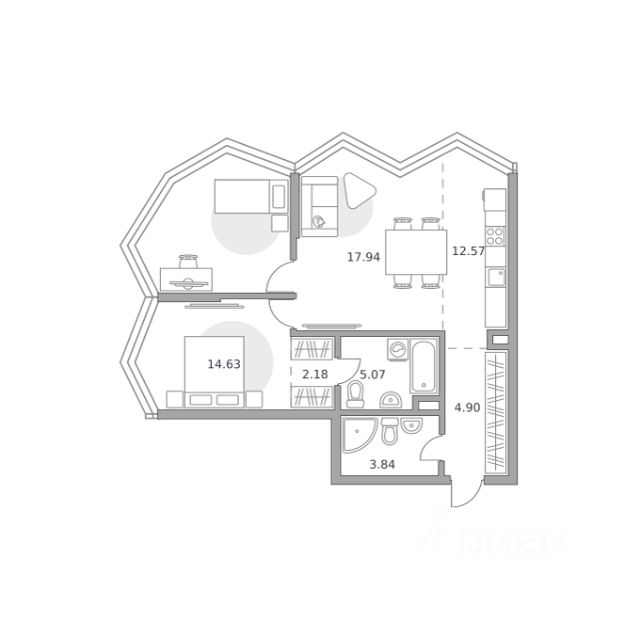 • ✅ Минимальная площадь: 56,5 м²